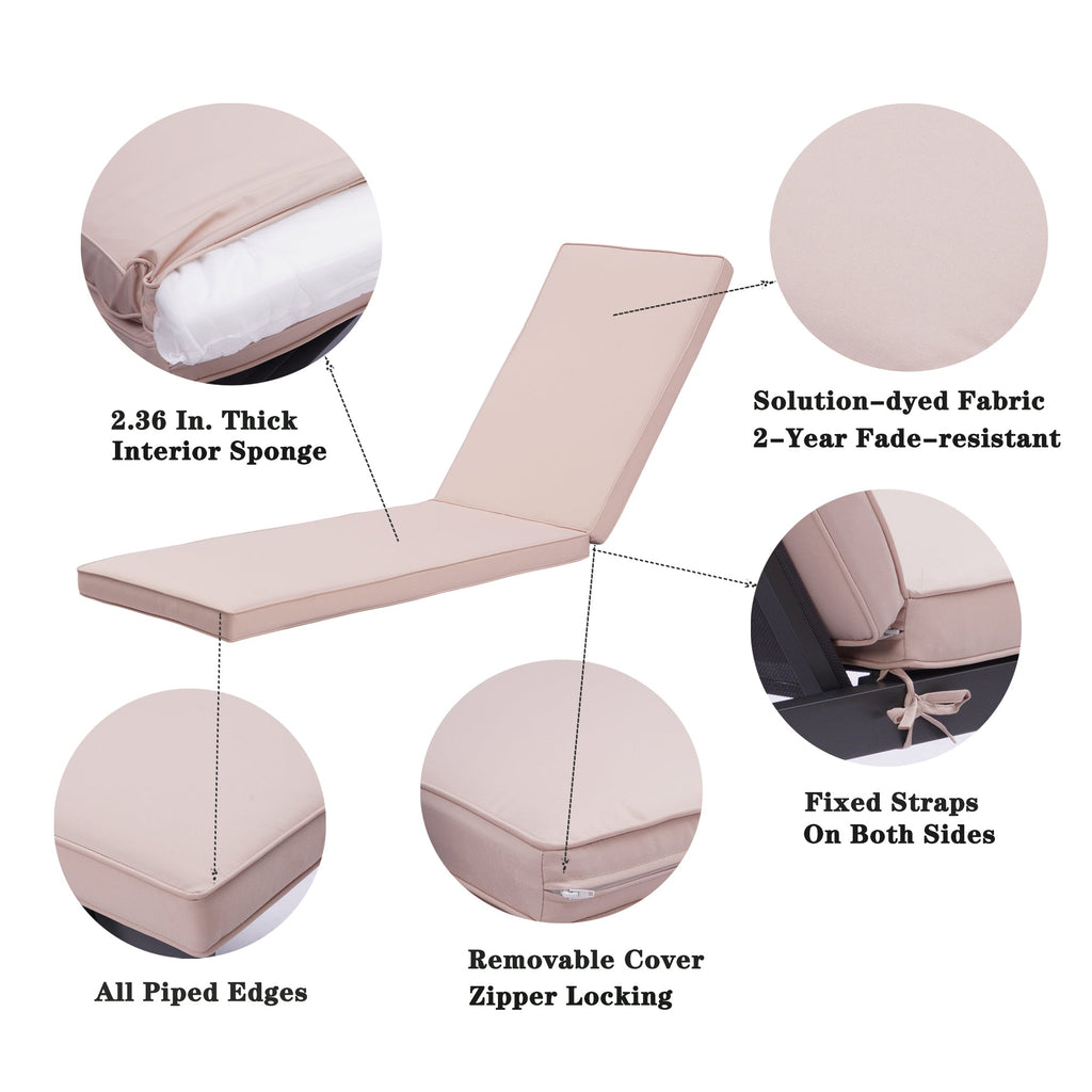 2PCS Set Outdoor Lounge Chair Cushion Replacement Patio Funiture Seat Cushion Chaise Lounge Cushion