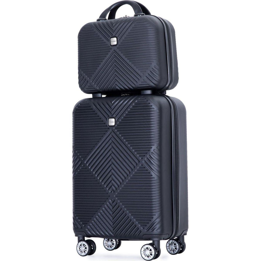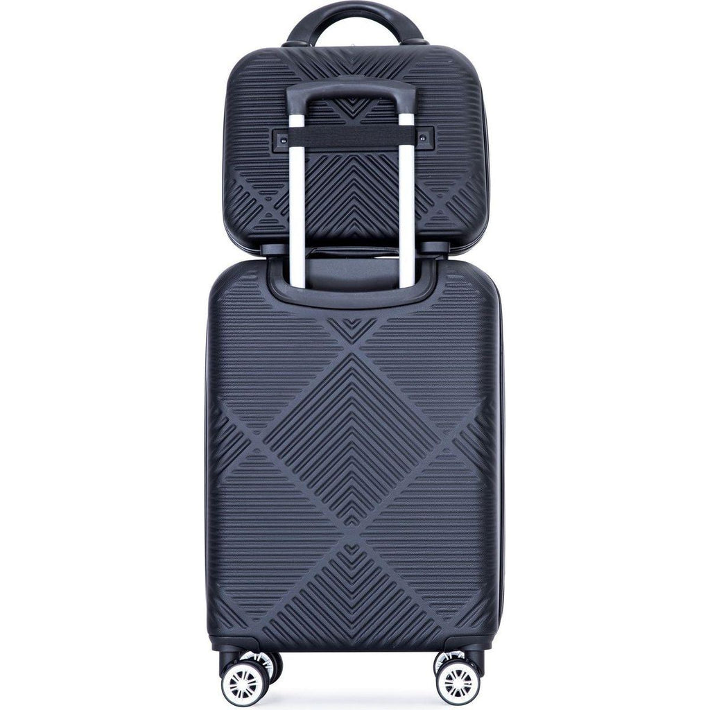 • 2 piece luggage set 20" for carry-on and 14" for vanity case, they can be stored next to each other to provide more convenience and save storage space.