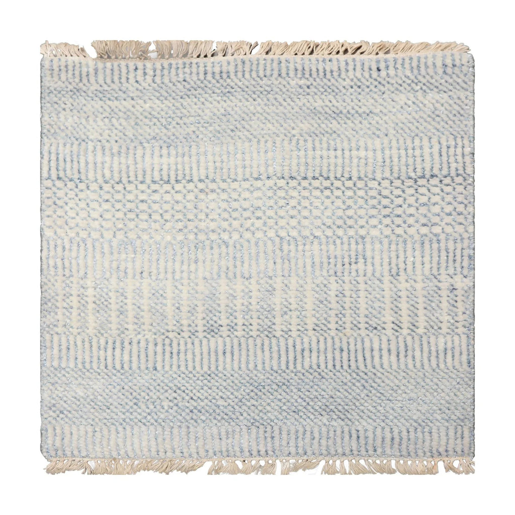 2'x2' Ivory Hand Knotted Tibetan Modern Wool and Bamboo Silk Oriental Area Rug
