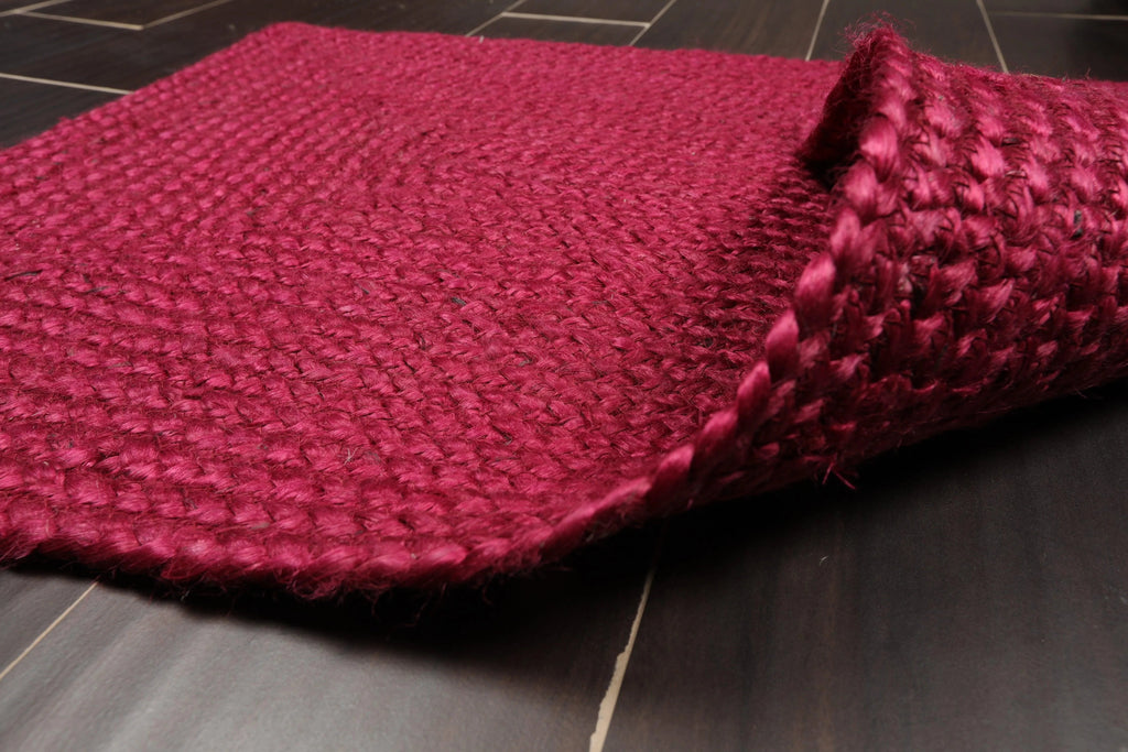 This is a beautiful Burgundy Color Easy to Clean Stain Resistant Handmade Braided Mat Handspun Jute Rug. Its elegant style is easy to decorate with and perfect for living room, dining room, bed room or anywhere in the residence or office.