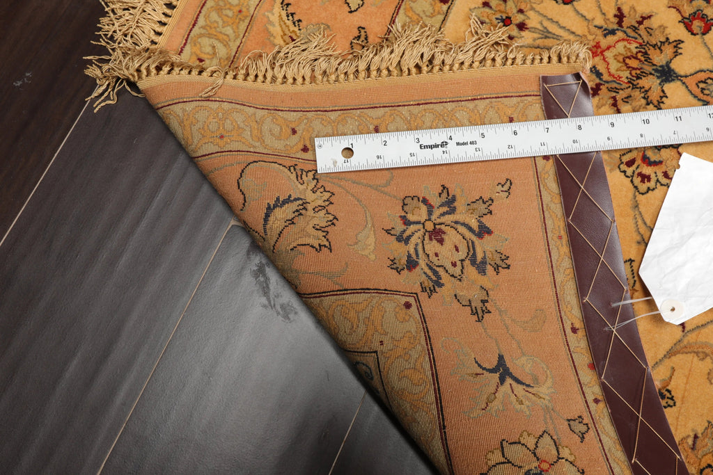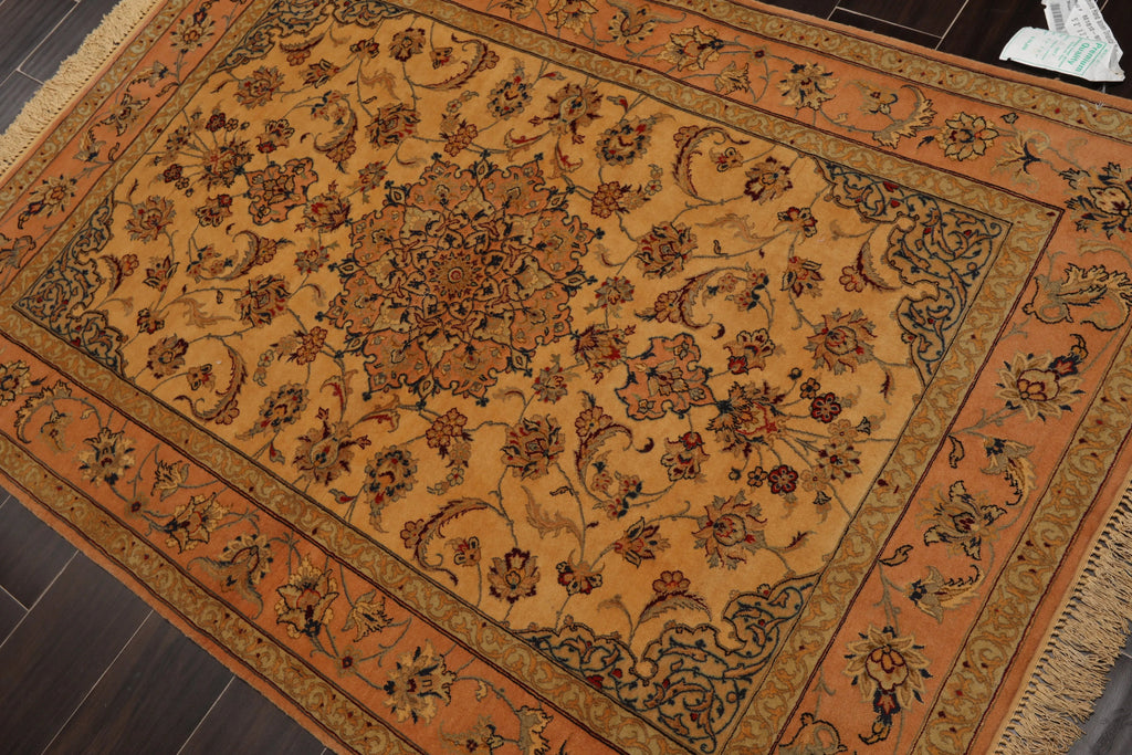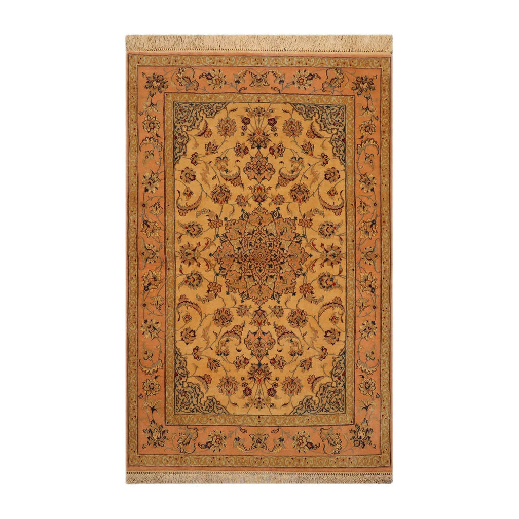 This is a beautiful Gold, Peach, Navy, Sage, Red, Multi Hand Knotted Oriental Area Rug 100% Silk. Its elegant style is easy to decorate with and perfect for living room, dining room, bedroom or anywhere in the residence or office.