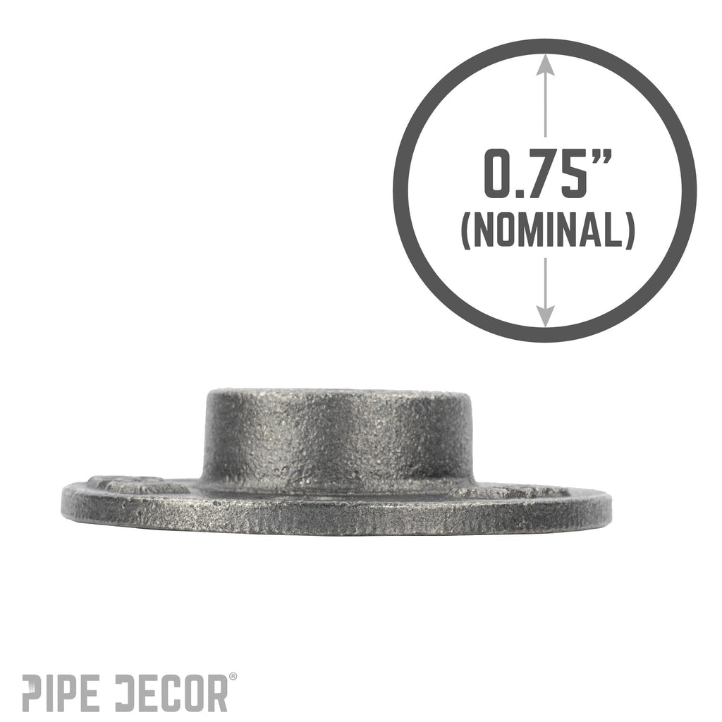 MINI FLOOR FLANGES: The workhorse of pipe decor. These flanges work as feet, brackets or couplings in a pinch. The mini flanges are just as strong as our other flanges but smaller and lighter. They will hold less weight when mounted on a wall because of one less screw hole. Sturdy cast iron they will give you the support your project needs.