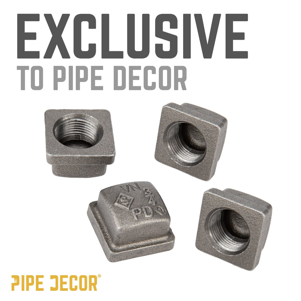 PIPE DECOR has created a one of a kind square cap design to give your industrial creations a distinct look. This patented design is exclusive to PIPE DECOR. Build industrial pipe shelving and table legs that no one else has. Complement your square tabletop or rectangular wooden shelving board with caps that are the same shape.