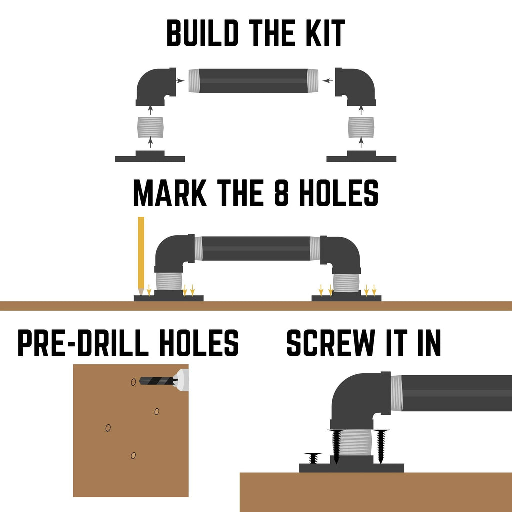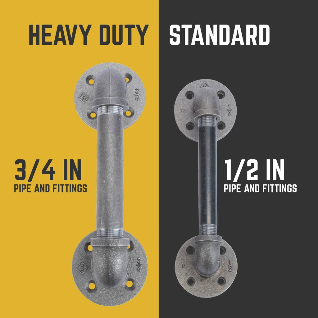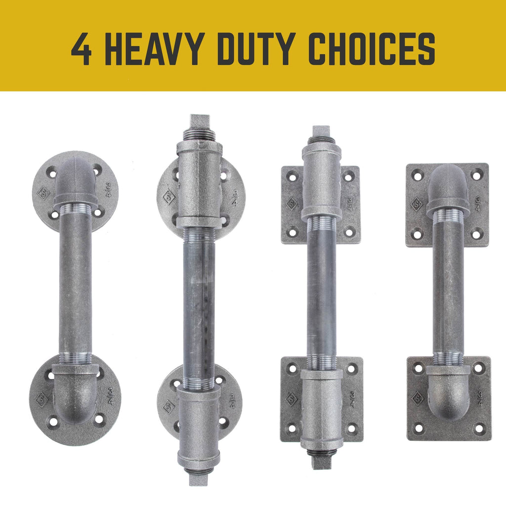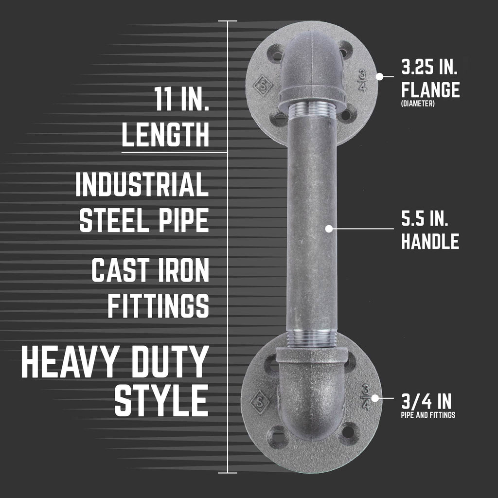 The barn door handle - reimagined. We've given our barn door handle a new sleek, edgy design to match the evolving look of industrial farmhouse decor. A perfect blend of function and style, these industrial farmhouse-style barn door pulls are the finishing touch for your rustic barn doors. These are genuine industrial pipe fittings, not imitation barn door handles. This product will stand the test of time. Hefty ¾ in. pipe and fittings means this industrial handle works well with full-sized doors and gives you something to grab onto. Authentic plumbing pipe and fittings can be painted to match your decor or sealed with a clear finish. Our industrial black steel pipes and malleable iron fittings can be matched with any type of wood for a one-of-a-kind DIY door handle project that you can complete in just one weekend. We recommend using our barn door handles on solid wood doors only. PIPE DÉCOR is built to stand the test of time. We're modernizing pipes and using traditional materials in new, innovative ways. Each piece is the standard size and weight used in industrial pipe applications. Our pipes are durable, so you never have to worry about your door pulls failing to deliver. Don't accept cheap substitutes available in purely decorative materials. PIPE DÉCOR is the real deal.