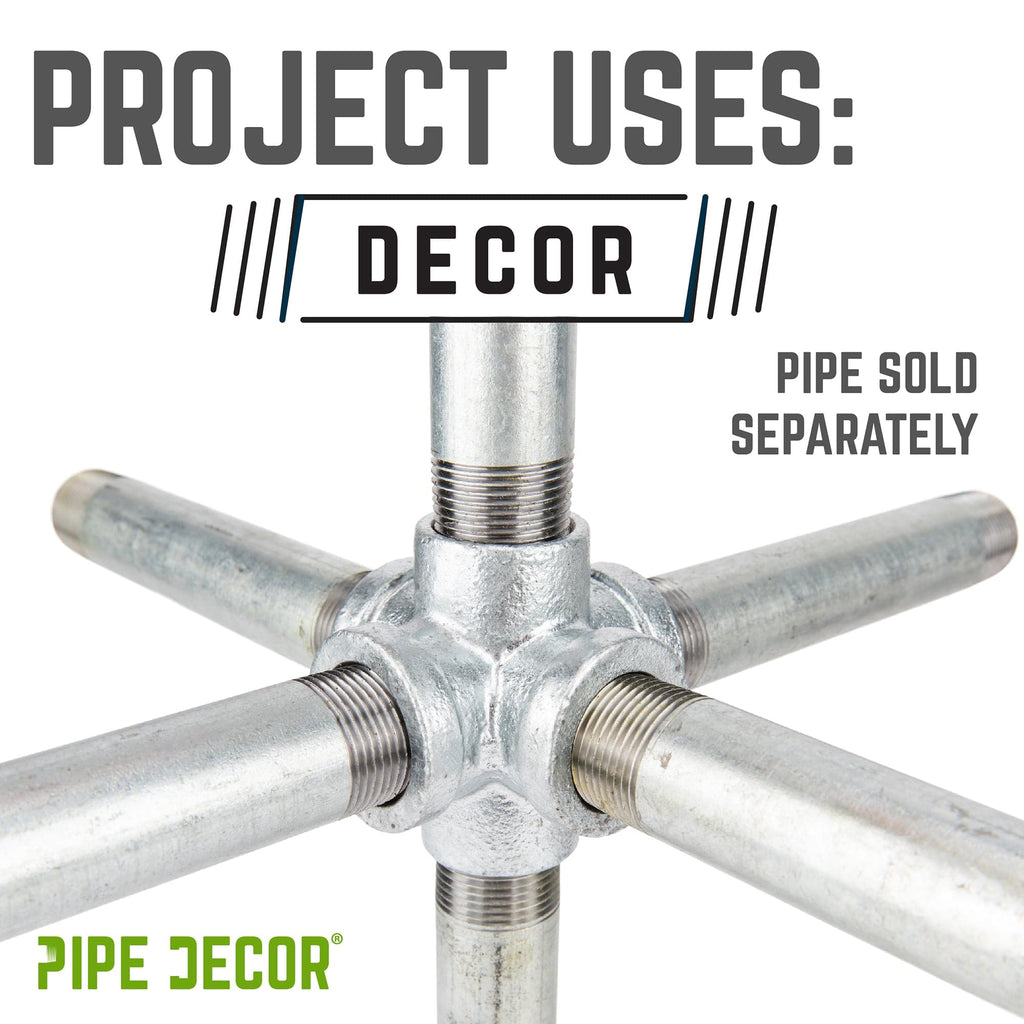 PIPE DECOR is always pushing the boundaries of designing with pipe. We created these fittings to give you more choices to build your dream projects. A PIPE DECOR exclusive, this 6-way fitting connects 6 pipes together. Use one as the center of a pipe light fixture or for other creative projects. The sky’s the limit!