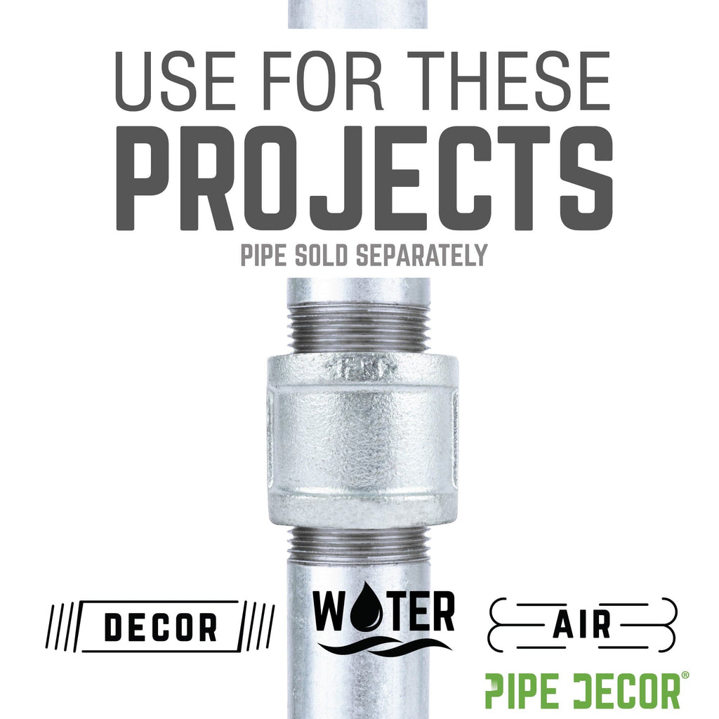Need a special pipe size? Add a galvanized coupling to join any two pipe lengths together to build the size you need. Add height or length to table legs, bar stools, clothing racks, and more by attaching two pipes of different lengths together. Galvanized fittings are silver in color with a shiny finish that brings a clean, polished look to your pipe furniture. Our fittings are made with durable, industrial-grade malleable iron. Fittings are 100% authentic and are made to stand the test of time. You will know PIPE DECOR parts and accessories when you hold them. Beauty and beast. Strength and style. These are real industrial fittings for your decorations and designs. Accept no substitutes. Extra pieces and accessories are available for your custom projects and expansions. Plug and play as desired.