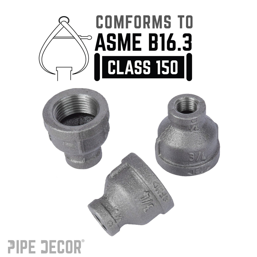 These cylindrical fittings are used to connect two pipes of different diameters. You can use a reducing coupling to add height or length to table legs, bar stool legs, clothing racks, and more by attaching two pipes together. Our fittings are made with durable, industrial-grade malleable iron. Fittings are 100% authentic and are made to stand the test of time. You will know PIPE DECOR parts and accessories when you hold them. Beauty and beast. Strength and style. These are real industrial fittings for your decorations and designs. Accept no substitutes. Extra pieces and accessories are available for your custom projects and expansions. Plug and play as desired.