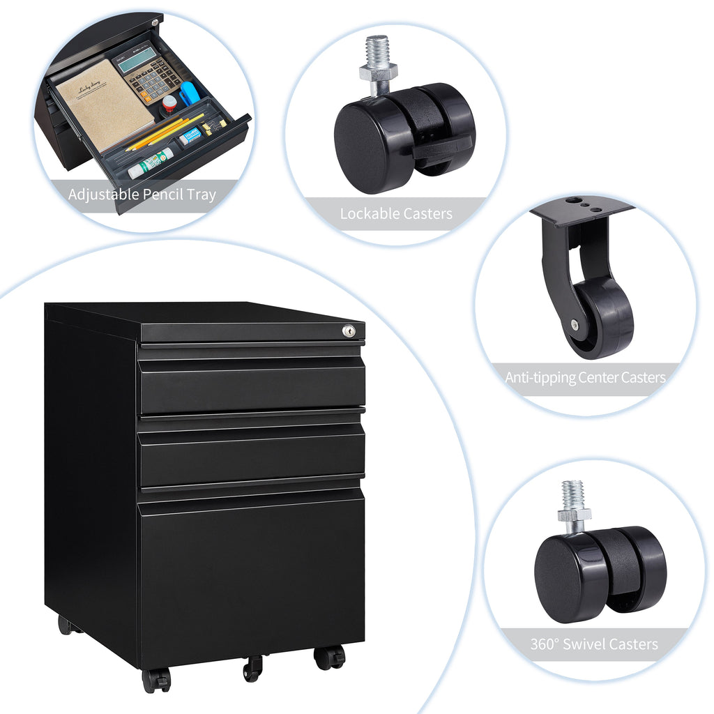 3 Drawer File Cabinet with Lock, Steel Mobile Filing Cabinet on Anti-tilt Wheels, Rolling Locking Office Cabinets Under Desk for Legal/Letter Size