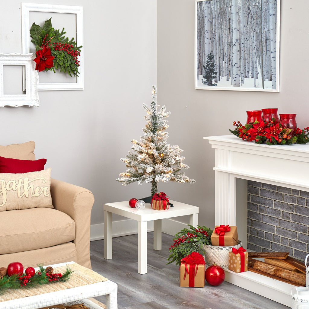 3’ Flocked West Virginia Spruce Artificial Christmas Tree with 50 Clear Lights and 142 Branches