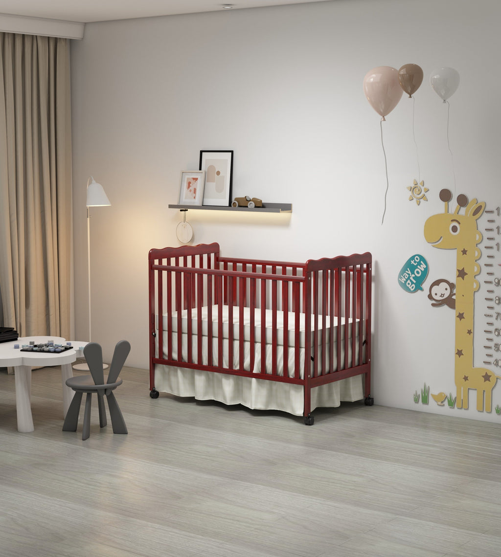 3-in-1 Convertible Crib has an elegant vibe, perfect to design that stylish nursery for your baby! It converts from a crib into a todddler bed (use toddler guard rail for conversion, sold seperately) and a daybed (stabilizer bar sold separately), perfect for those early growing years. With 4 mattress height positions, can be adjusted according to the age of your baby. Use it in the highest setting first and gradually set it lower as your child grows. Other useful features include a teething rail and dual hooded, safety locking wheels for easy mobility in those early years Built of renewable, sustainable & durable New Zealand pinewood, design is a mix of straight and curved lines that blend beautifully with any room decor. Available in stylish, non-toxic finishes to mix and match and create a stylish nursery! comes with a stationary (non-drop side) rail design for added security, meets all applicable ASTM/CPSC stan