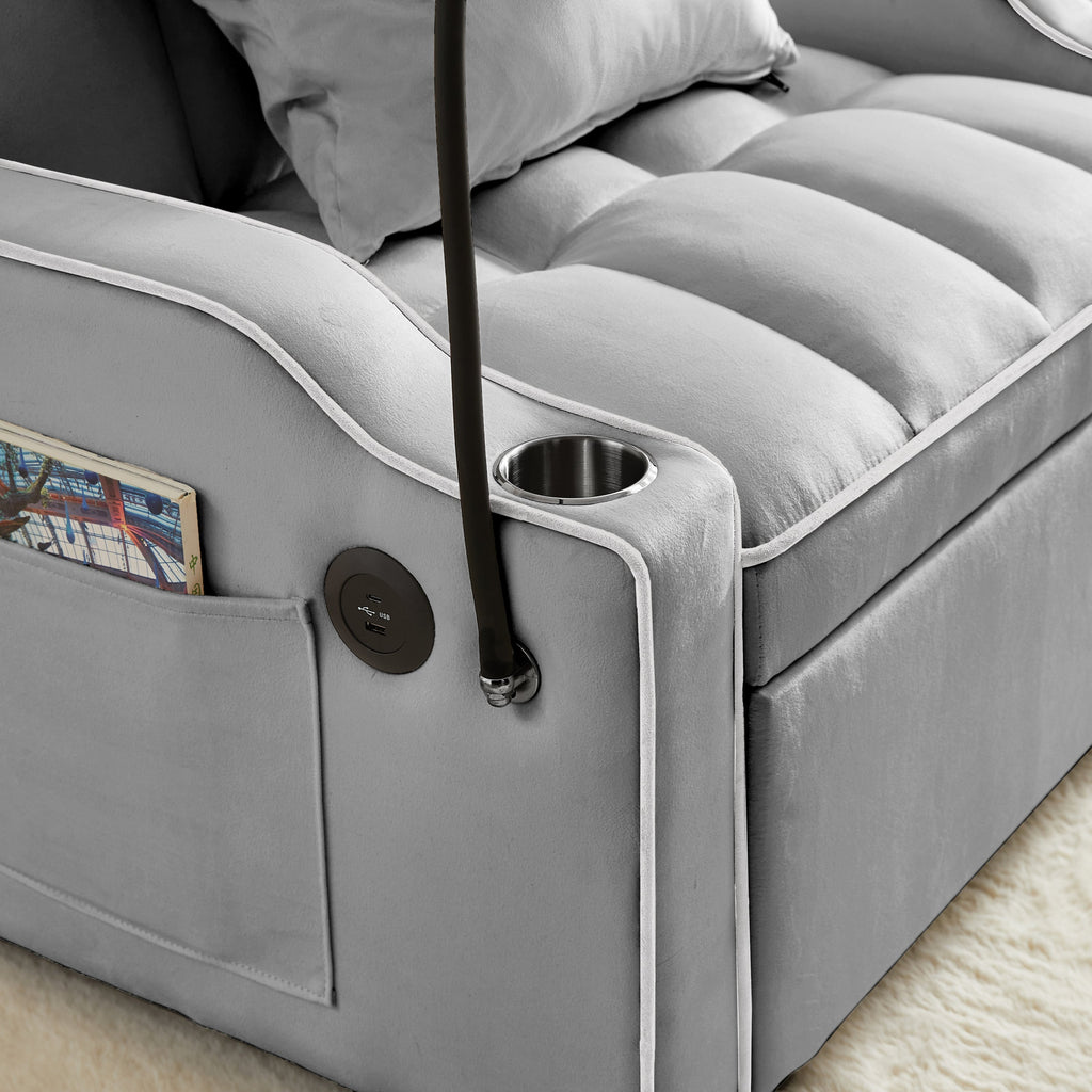 - USB Port: There are 1 USB charging port and 1 Type-C port on the right armrest of the sofa for various charging cables, which can provide continuous power supply for your phone. The convenient cup holders design on top of the front armrest can make you place drinks and cups.
