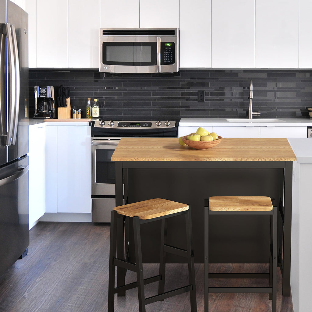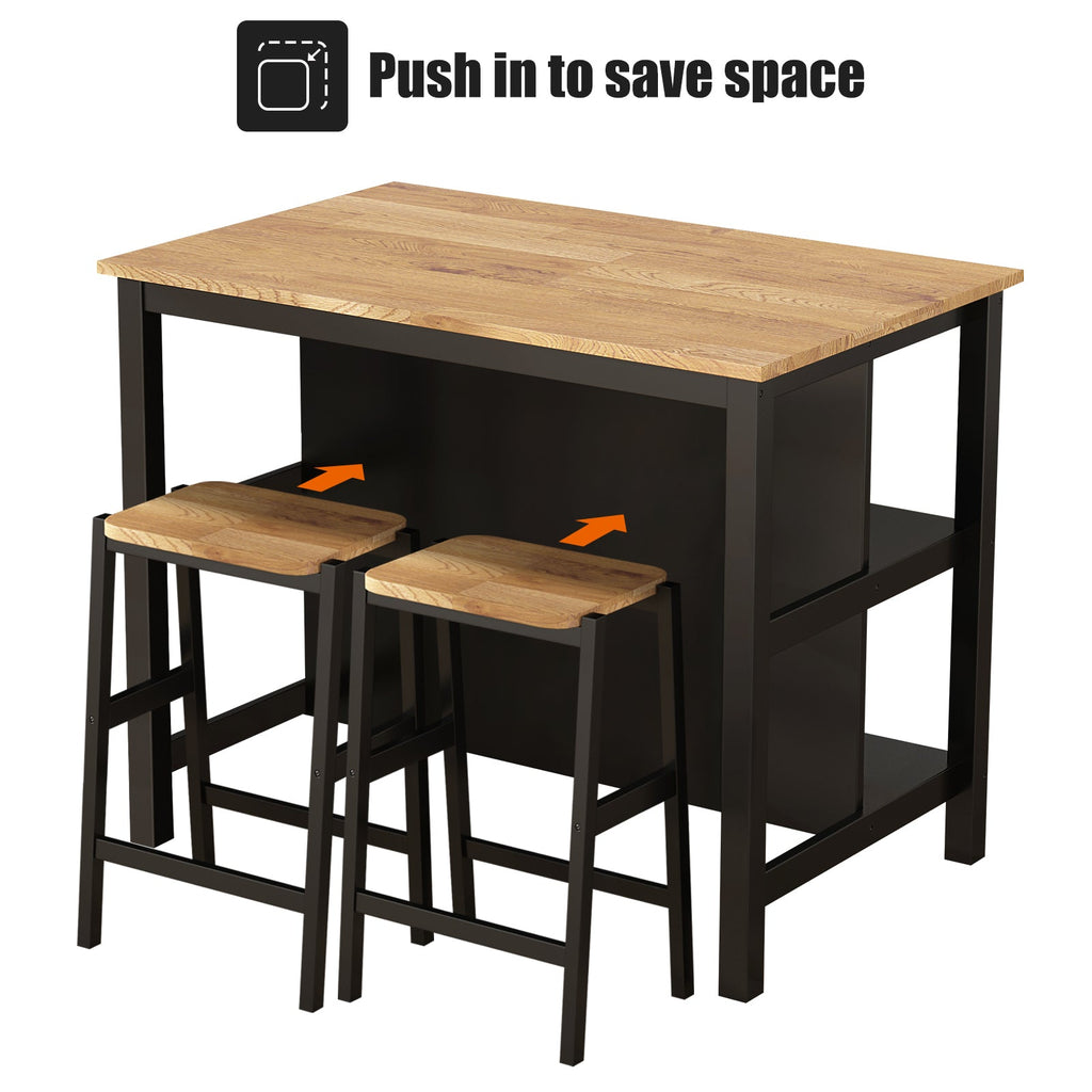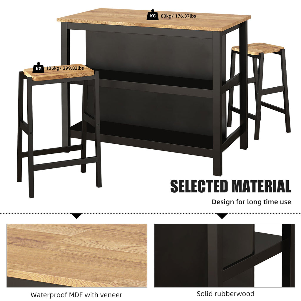- [3PCS DINING SET] This dining table set includes 1 rectangle table with open shelves and two backless stools, perfect for 2 persons to enjoy dining time. It features a spacious tabletop that meets most dining or cooking needs. Table size: 110*78*87.2cm/ 43.31*30.71*34.33in. Stool size: 44*33.5*60.5cm/ 17.32*13.19*23.82in (L*W*H).