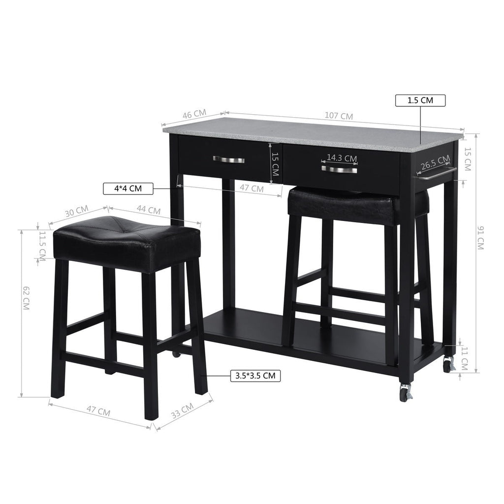 • wo drawers provide ample space for putting bowls, dishes, glass and more tableware. The bottom shelf could provide additional space when you use it and display the stools when you finish.