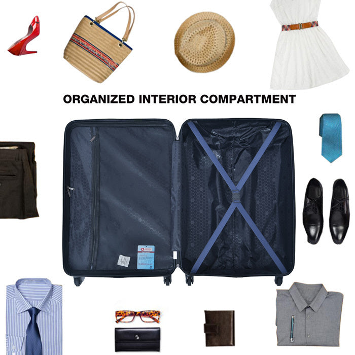 3 Piece Luggage Sets ABS Lightweight Suitcase with Two Hooks, Spinner Wheels, TSA Lock, (20/24/28) Navy
