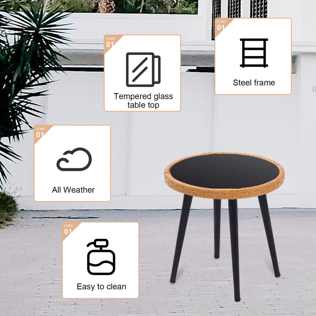 • "【Durable & Sturdy】: Durable of the strong steel-frame and metal legs,this outdoor patio chair set is sturdy enough to hold up 250lbs and resist changes for use.Handwoven PE rattan give pretty resistance to UV and water.All-season is available.Furthermore,all of the chairs and side table are height adjustable with anti-slip pads to protect the floor while improving stability."