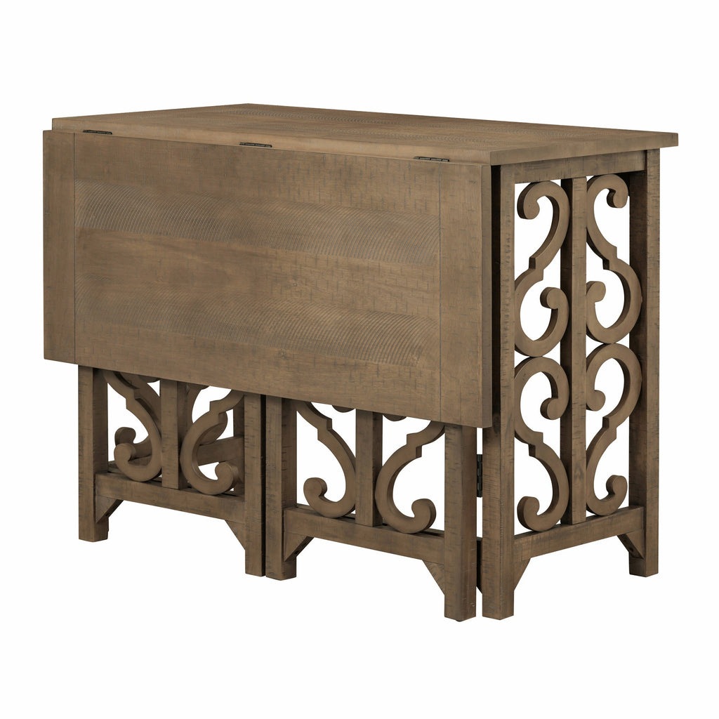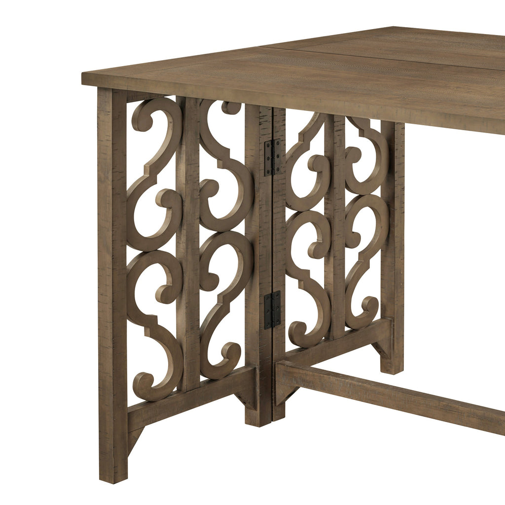 The retro 3-piece counter height dining table set consists of a folding dining table and two saddle stools. The style of this kitchen table set is belong to rustic style or industrial home style. This is a very convenient and practical folding table. You only need to fold one side of the table legs inward to put down the table top on one side, which can be used as a desk. Tuck the fabric seats under the table when you don't use them to save space in your kitchen or dining room.