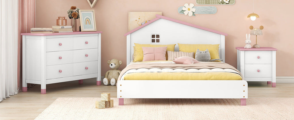 - Funny Design: The headboard of this platform bed is in the shape of a house. It masterfully blends with all styles of home decoration. The dresser and nightstand are in contrasting colors, cute and warm. They can help to complete and enhance the look of any bedroom.