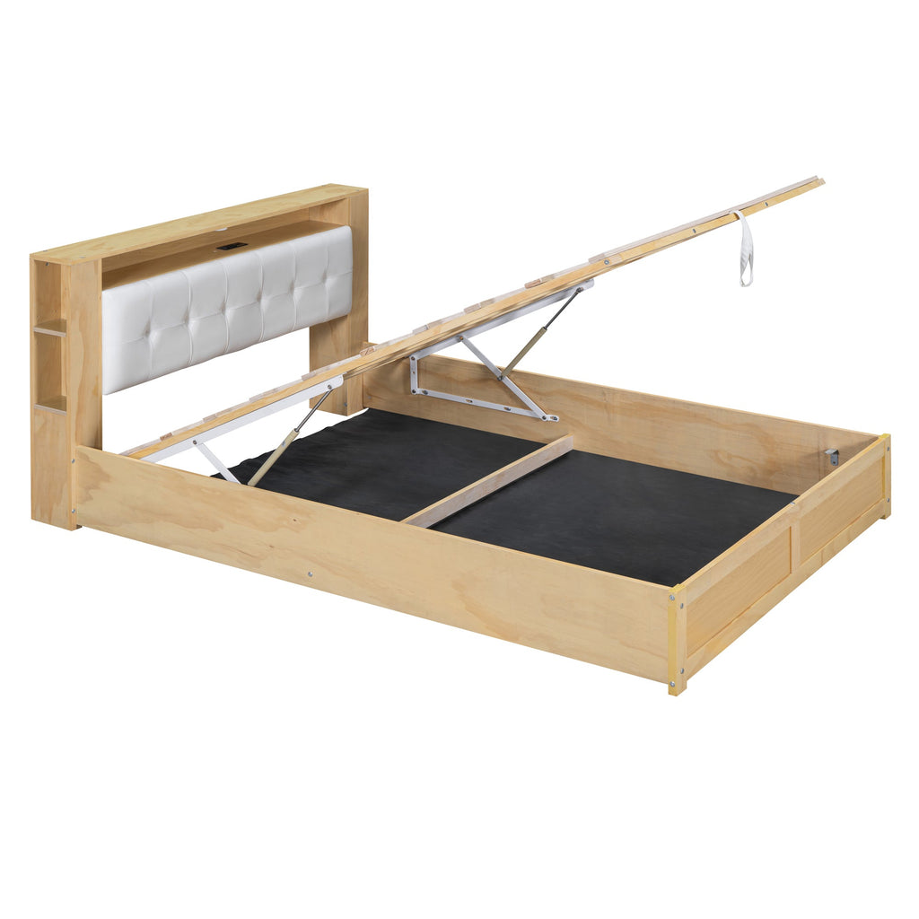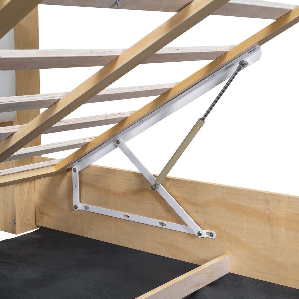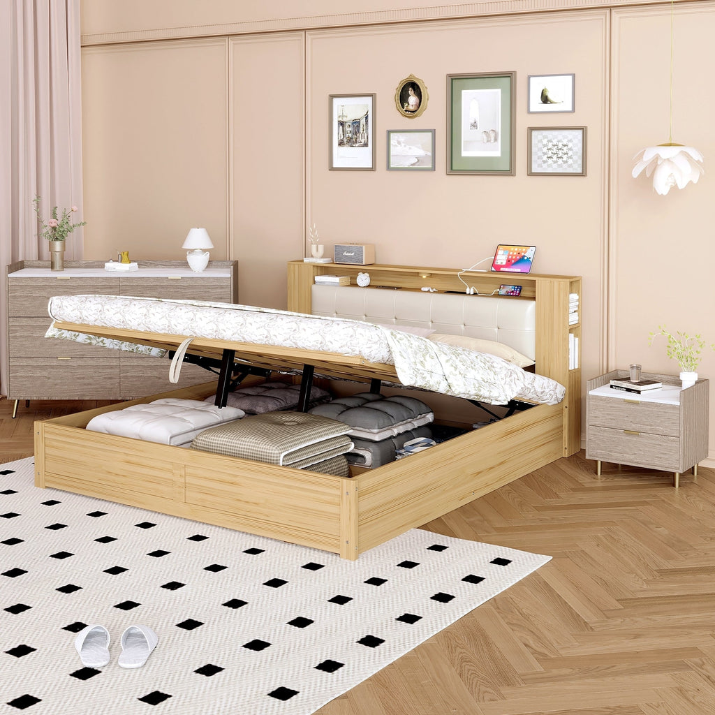 - [Space saving] The hydraulic storage system underneath the mattress is perfect for you to store quilts, bed sheets and other necessities, keeping your room organized. Additionally, the side compartments on the headboard provide extra storage for your personal items. This dresser and nightstand provides enough space for storage of daily supplies while making full use of the limited space.
