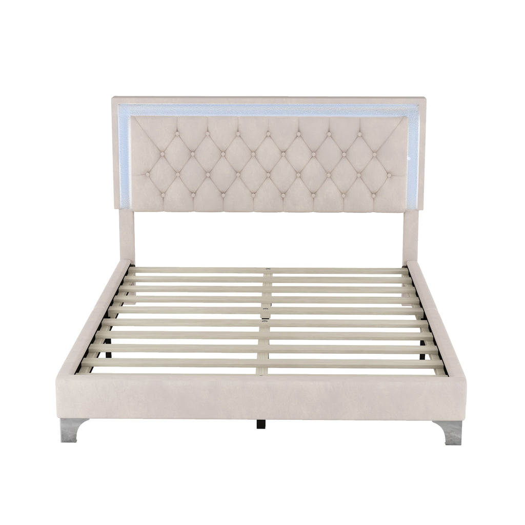 3-Pieces Bedroom Sets,Queen Size Upholstered Platform Bed with LED Lights and Two Nightstands