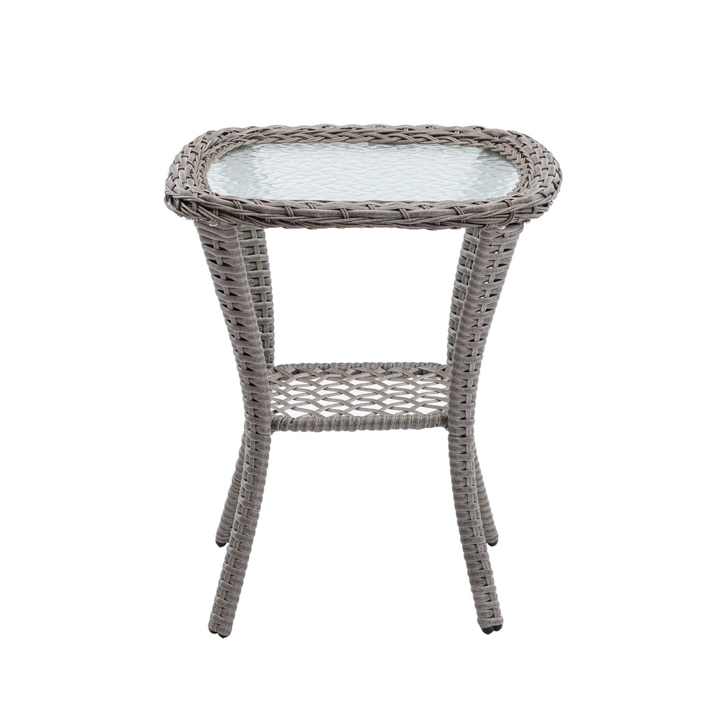 This bistro set features an elegant tempered-glass top side table for holding your refreshments, perfect for a couple glasses of wine or the morning coffee and newspaper. Besides, this side table has a extra storage space for drinks and outdoor meals.
