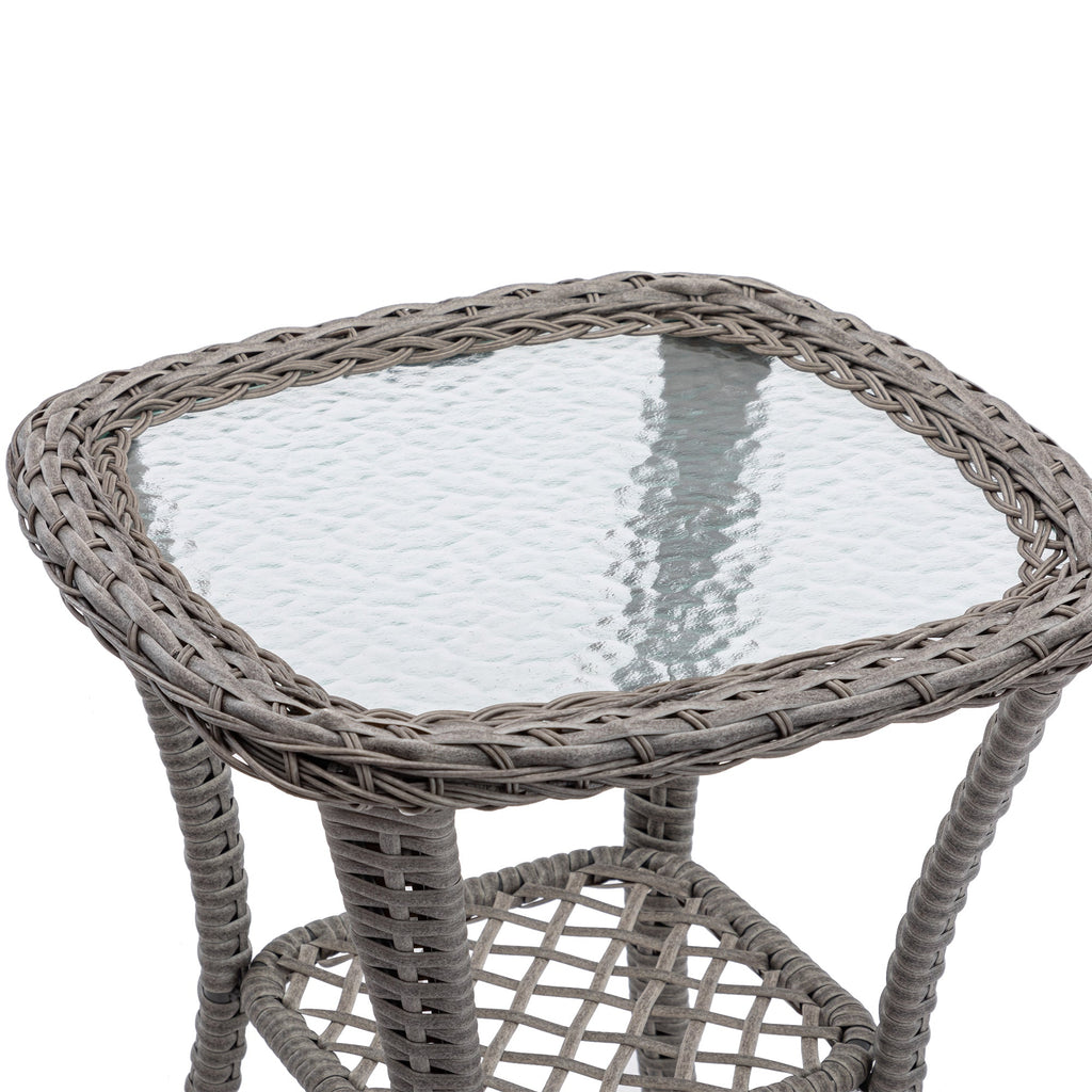 This bistro set features an elegant tempered-glass top side table for holding your refreshments, perfect for a couple glasses of wine or the morning coffee and newspaper. Besides, this side table has a extra storage space for drinks and outdoor meals.