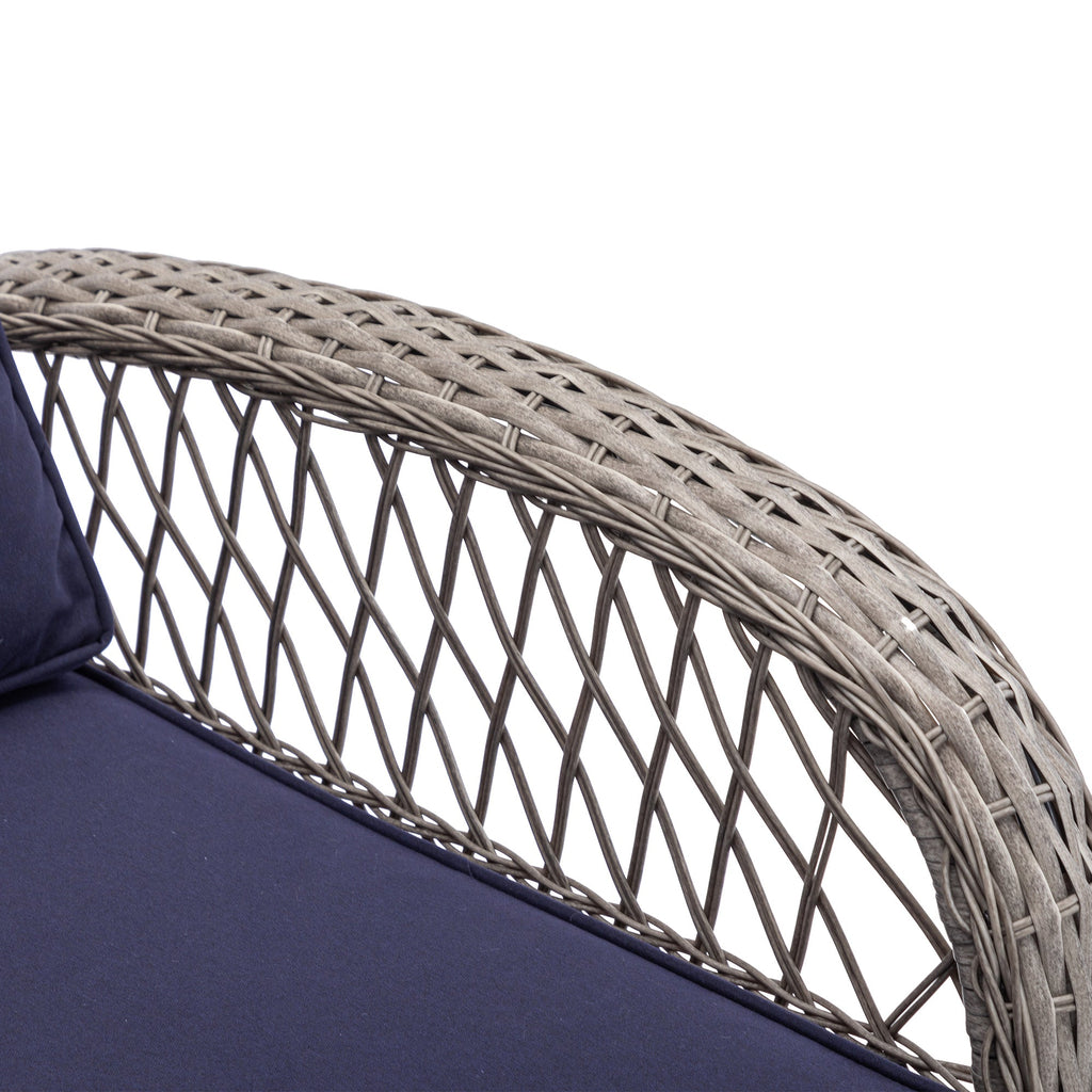 Grey coated heavy steel frame has the characteristics of stability and strong load-bearing capacity up to 330lbs.All-weather round wicker withstands the elements. The cushion adopt good fabric, filled with high-density sponge for high resilience, comfortable and durable, removable and washable.