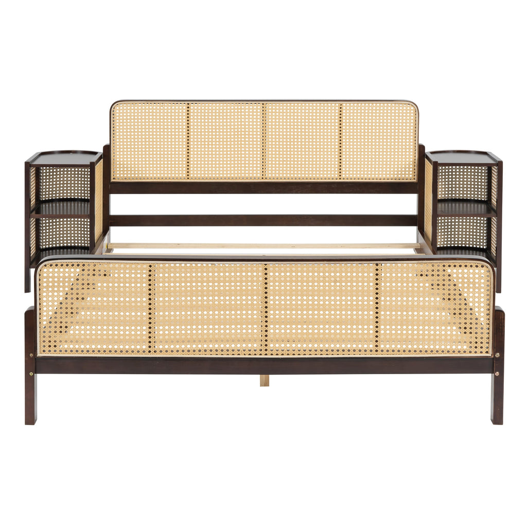 - [Superior Craftsmanship] Woven rattan is incorporated into the curving headboard and adds visual texture and appeal. The rounded design can protect your family from injury.