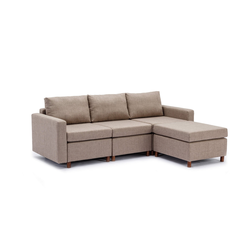 With a linen seat and a sturdy wood frame, the modular sectional couch is tear-resistant and has a long service life. Padded with high density sponge, this modular sofa with ottoman provides a comfortable seat. Its maximum load capacity reaches 330lbs.