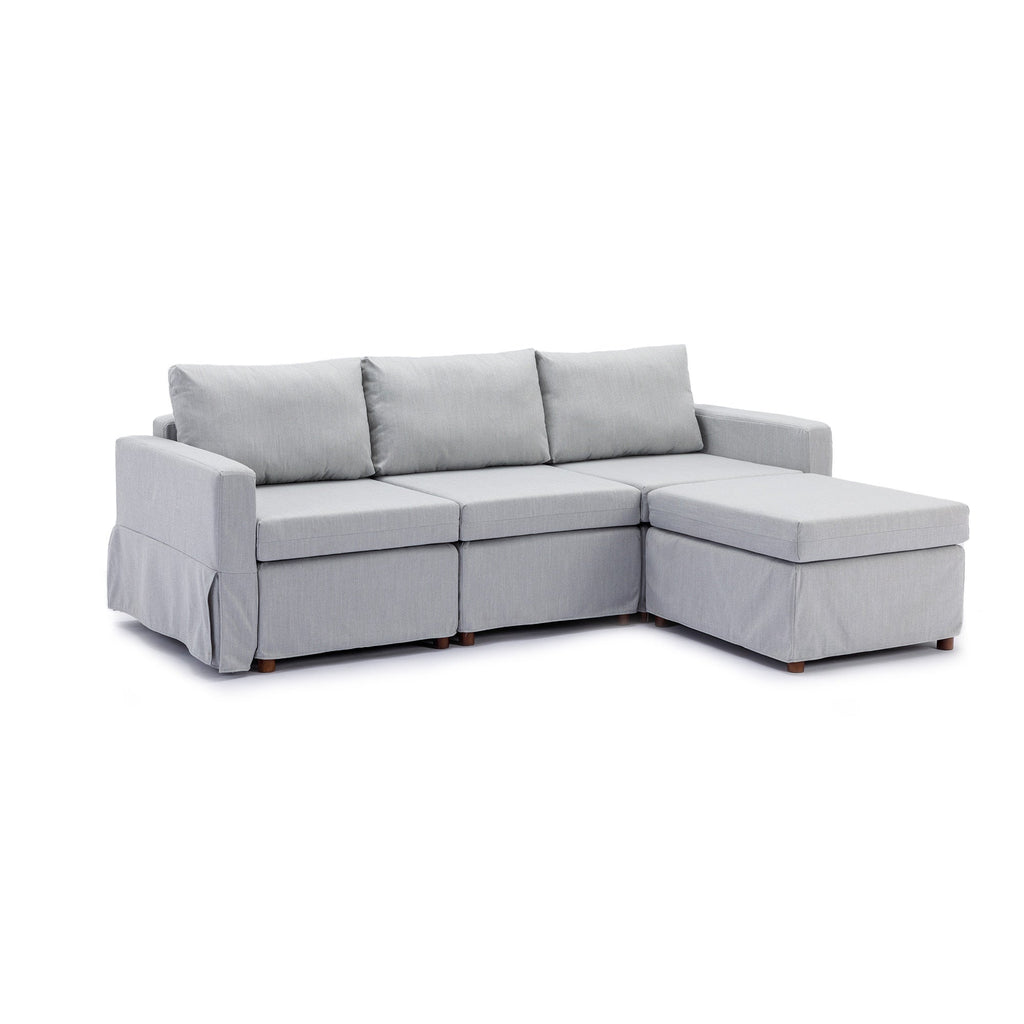 With a linen seat and a sturdy wood frame, the modular sectional couch is tear-resistant and has a long service life. Padded with high density sponge, this modular sofa with ottoman provides a comfortable seat. Its maximum load capacity reaches 330lbs.