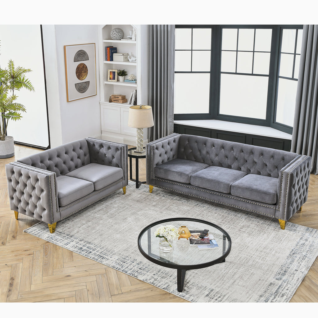 3-seater + 2-seater Combination sofa.GREY VELVET