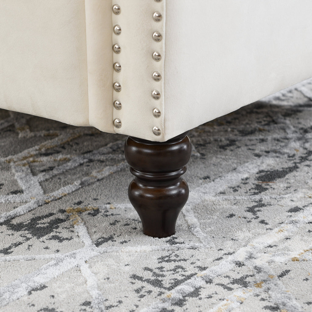 - Sturdy and durable. The frame of the sofa is made of solid wood for added sturdiness and durability. With comfortable foam, soft cushions supported by a curved spring structure and tufted buttons on the back and arms, this sofa is perfect for those who want to rest after a busy day.