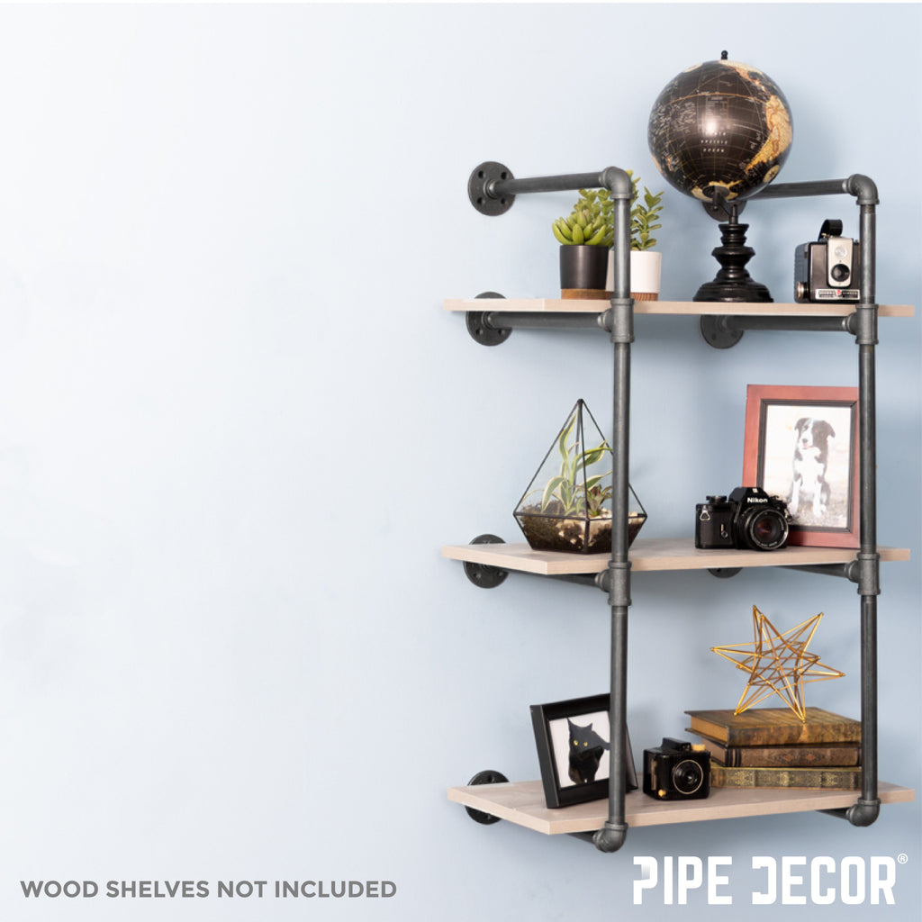 Pipe Decor's 3-Tier wall mounted shelf is a statement piece for any wall in your home. Our wall mounted shelving unit utilizes authentic steel plumbing pipe and malleable cast iron fittings creating a true vintage look and feel. Reminiscent of the industrial age, the framework for this unit lends itself to a multitude of decors, Industrial Farmhouse, Victorian Vintage, Rustic, Retro and Modern. This piece will bring beauty and function to any room in your home, retail or commercial space. You will know Pipe Decor parts and accessories when you hold them. Beauty and beast. Strength and style. This is real industrial pipe for your creative design needs. Accept no substitutes. All our pipe and fittings come coated in a light industrial grease to prevent rusting. Clean and seal each piece, before assembly, to ensure that they stay rust-free. After cleaning, seal the pipe with polyurethane spray to protect it from rust and scratches.