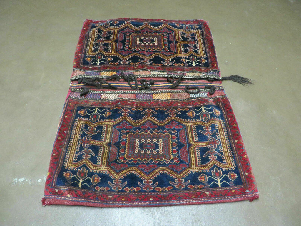 3' X 4.5' Antique Handmade Turkish Tribal Wool Rug Double Saddle Bag Nice