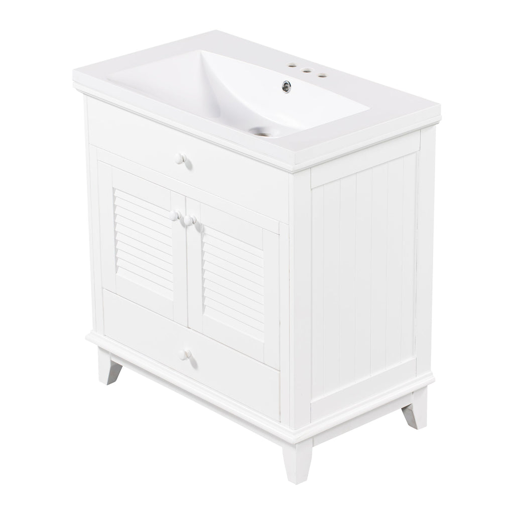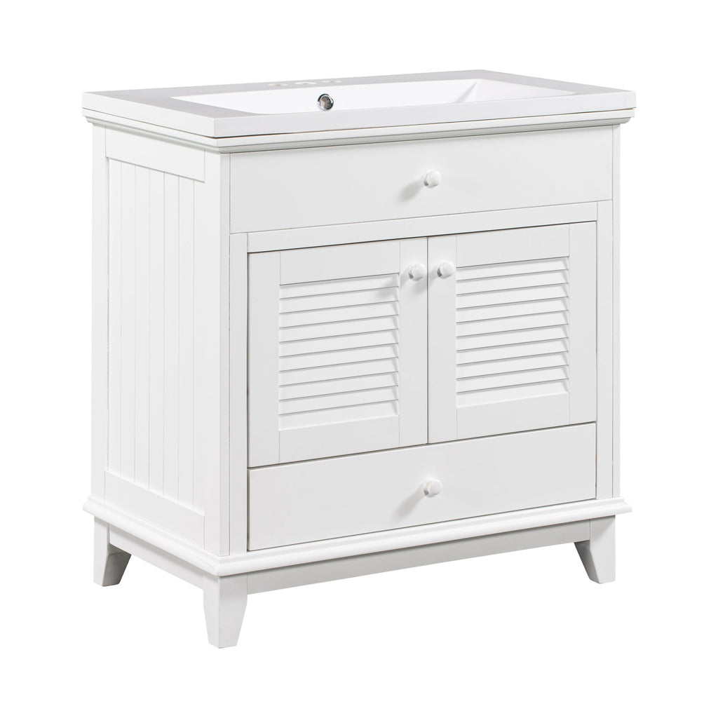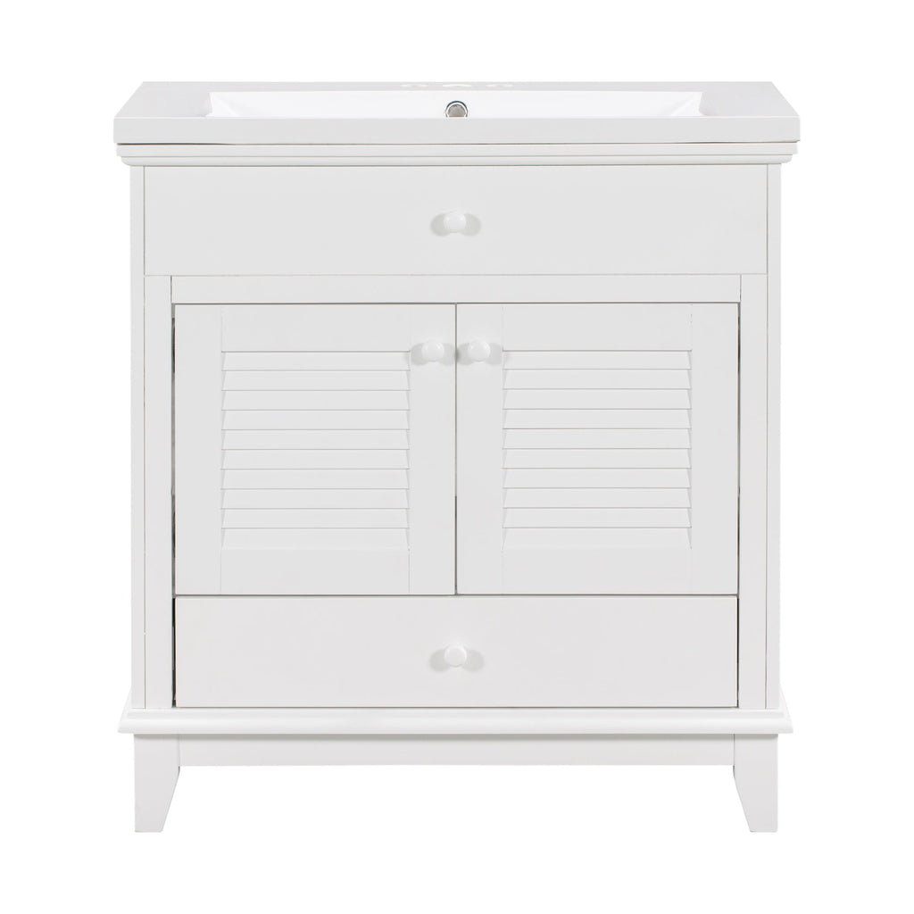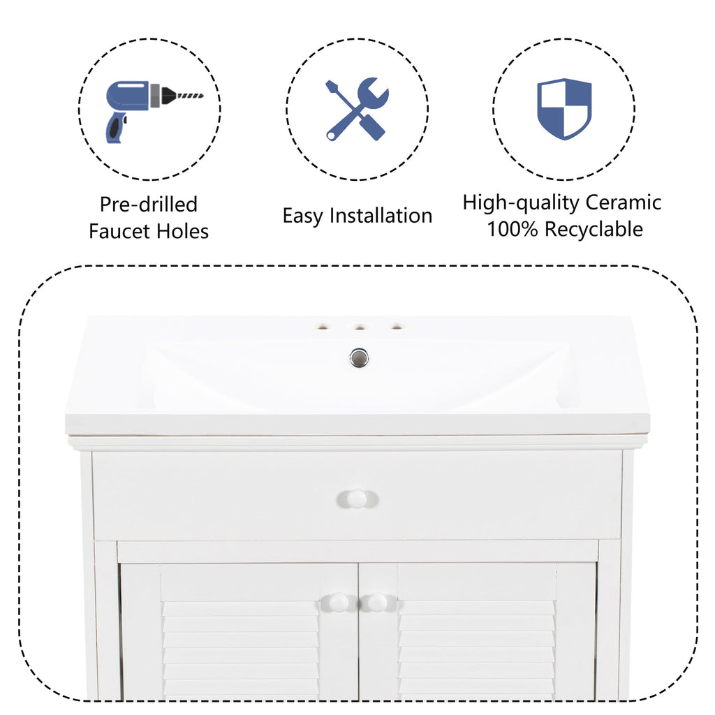 - Shutter Door Design: To increase the artistry and aesthetics of the home environment, this bathroom vanity has two shutter doors and one large drawers. The reasonable distribution of the whole furniture offer variety functions to meet the different requirements in daily life.