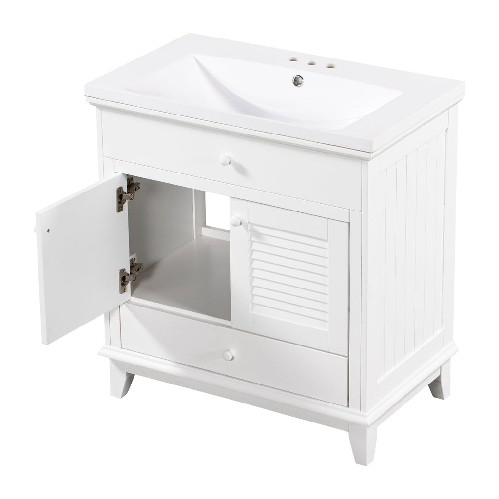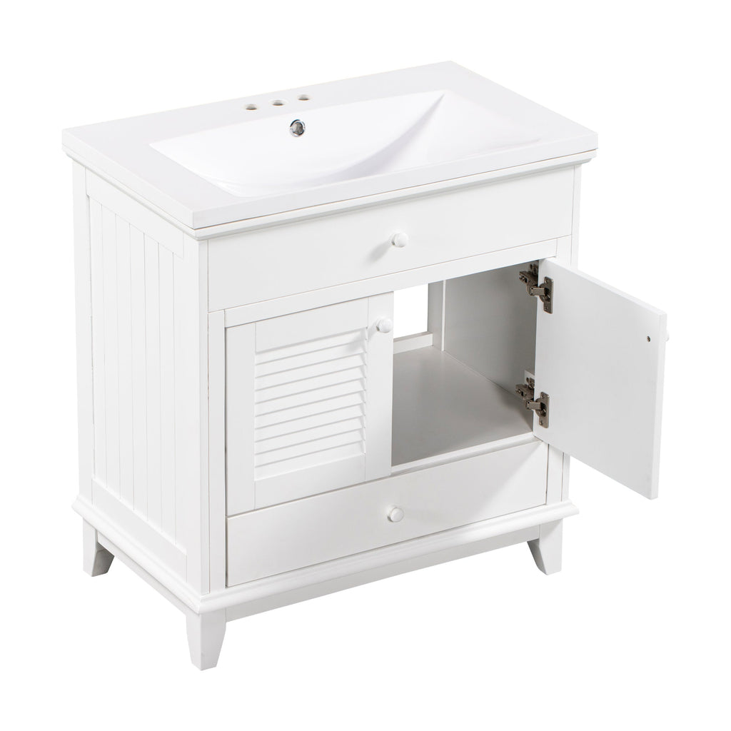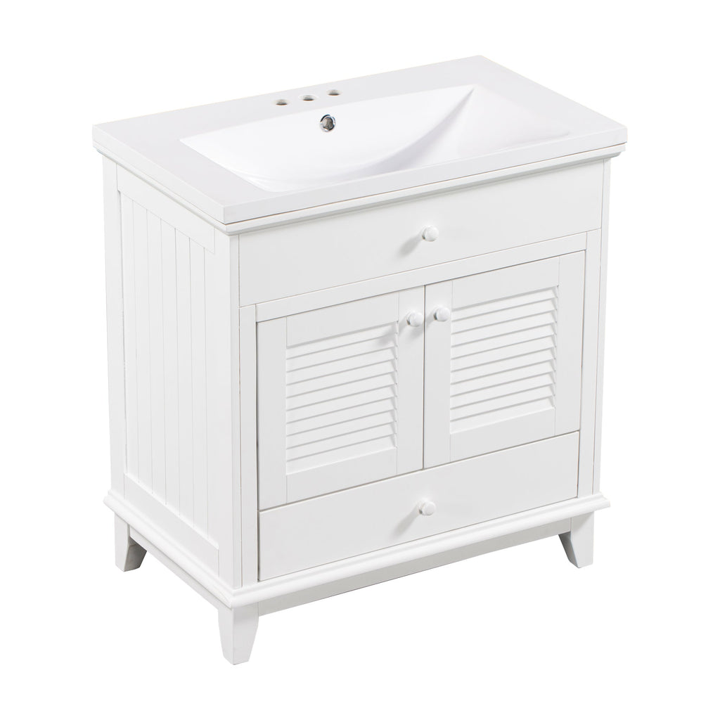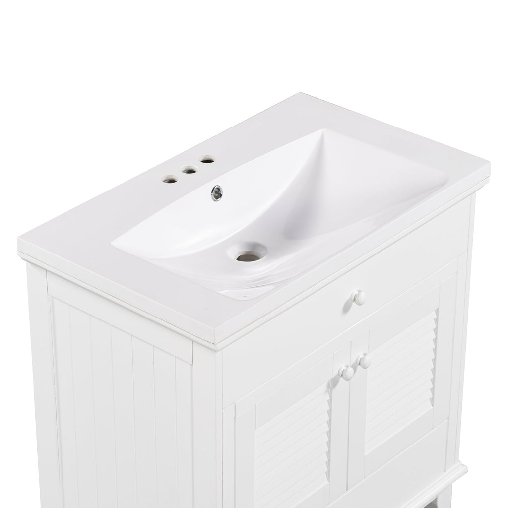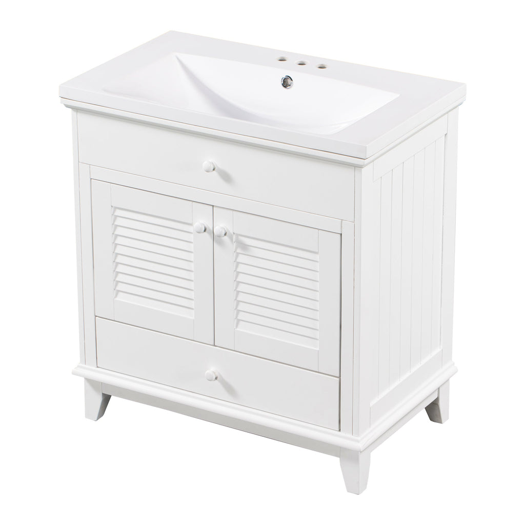 - Shutter Door Design: To increase the artistry and aesthetics of the home environment, this bathroom vanity has two shutter doors and one large drawers. The reasonable distribution of the whole furniture offer variety functions to meet the different requirements in daily life.
