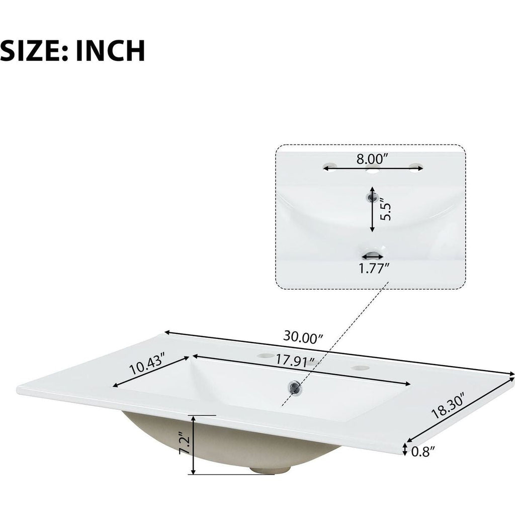 - Smooth Ceramic Sink: Our bathroom basin sink is made of ceramic with smooth and water-proof finish, which hardly leaves water stains. The pre-drilled three holes on the top is available to 8" Widespread faucet (not included). Besides, the overflow with metal circle is in case of water spilling over when you forgot to turn off the tap.