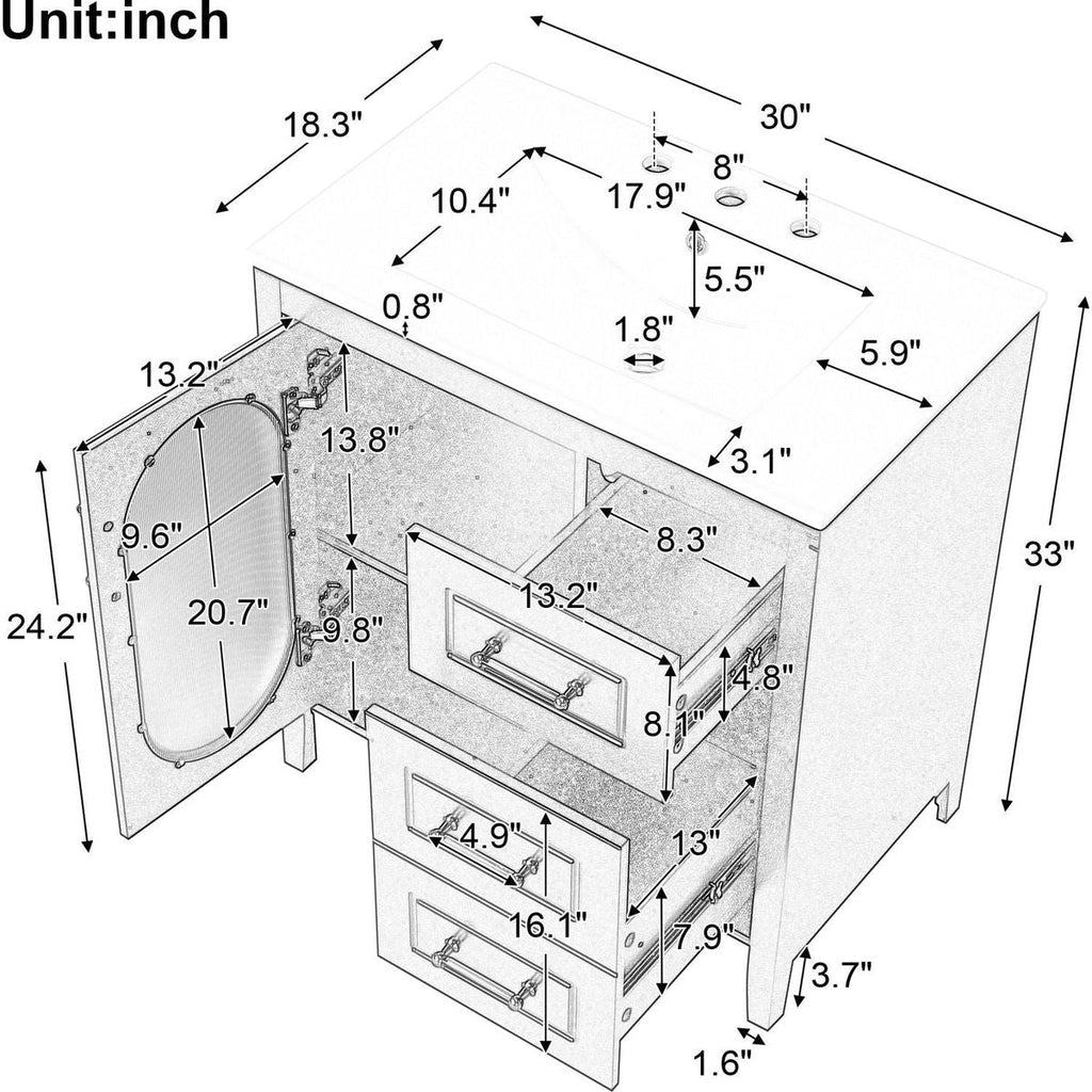 - Assembly Required: This bathroom vanity, one package, needs assembly. All the hardware and instruction manual are provided. You can install it according to the instruction easily.