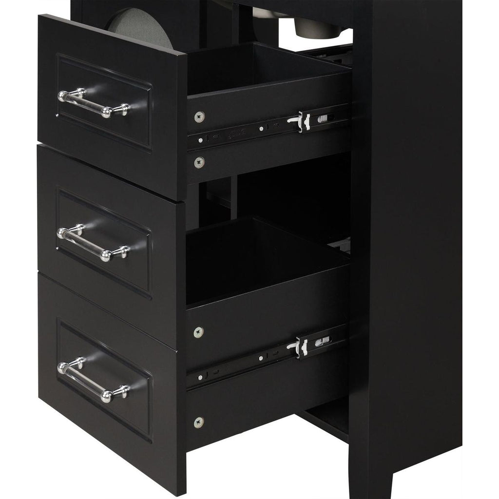 - Ample Storage Space: Considering the humid environment in bathroom, this bathroom vanity has ample enclosed storage spaces: one cabinet with door(one adjustable shelf inside) and two drawers with slide rails. You can put soaps, towels, shampoos, tissue paper and other bathroom essentials in it so to keep them away from dust.