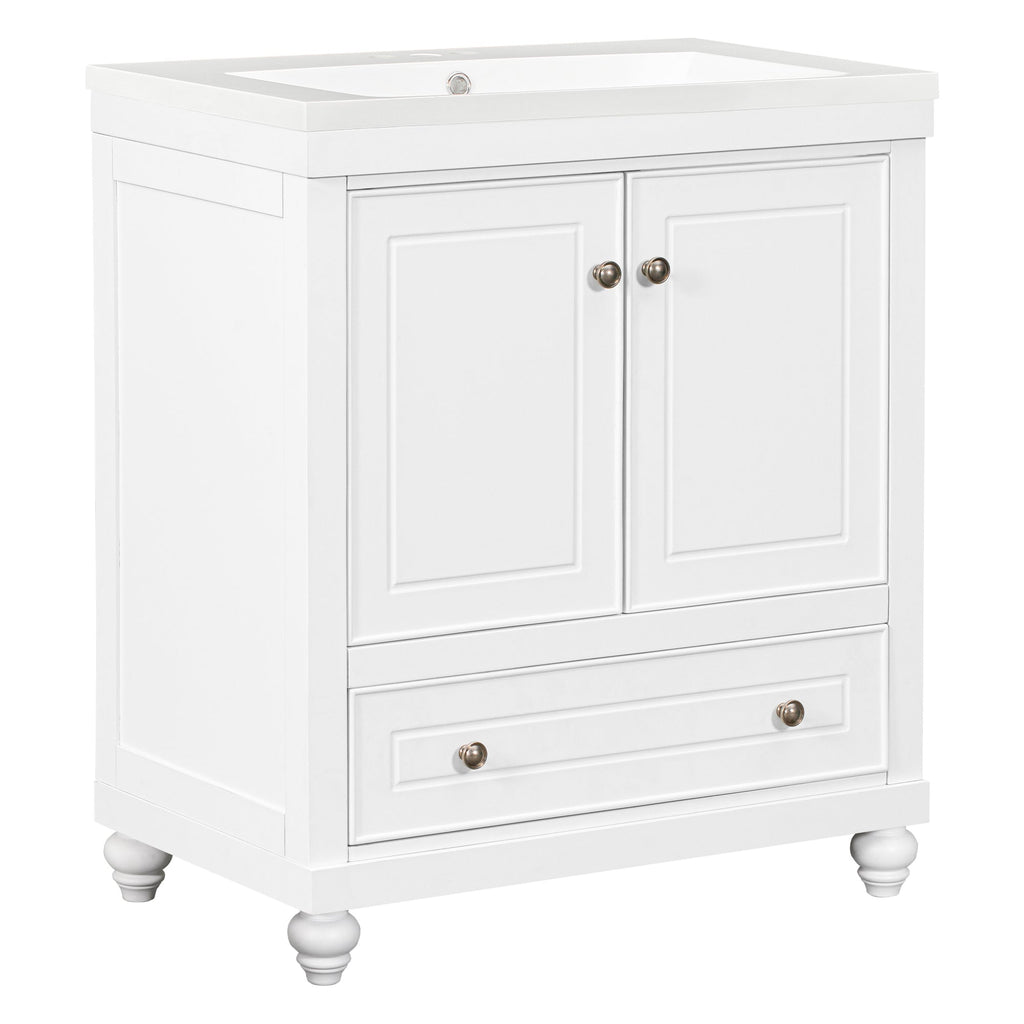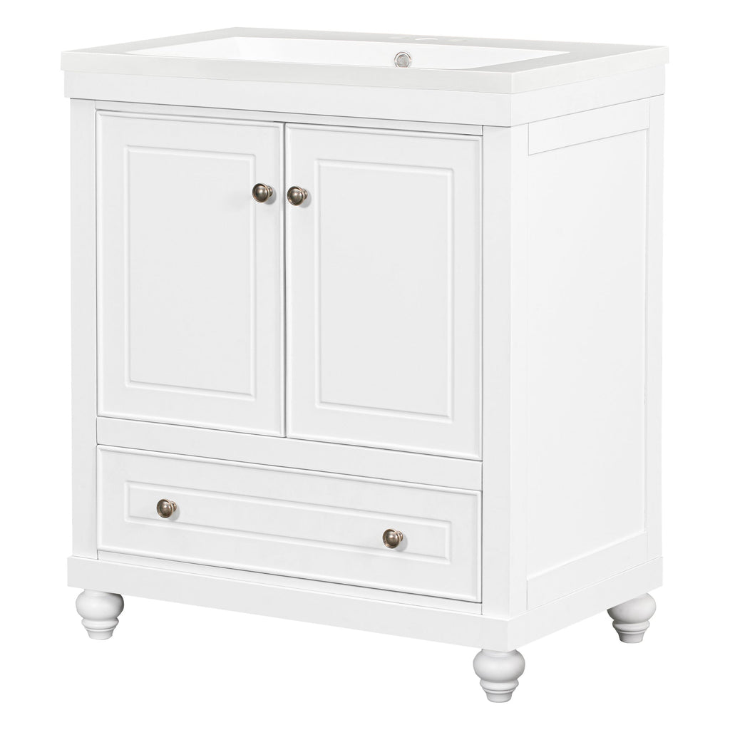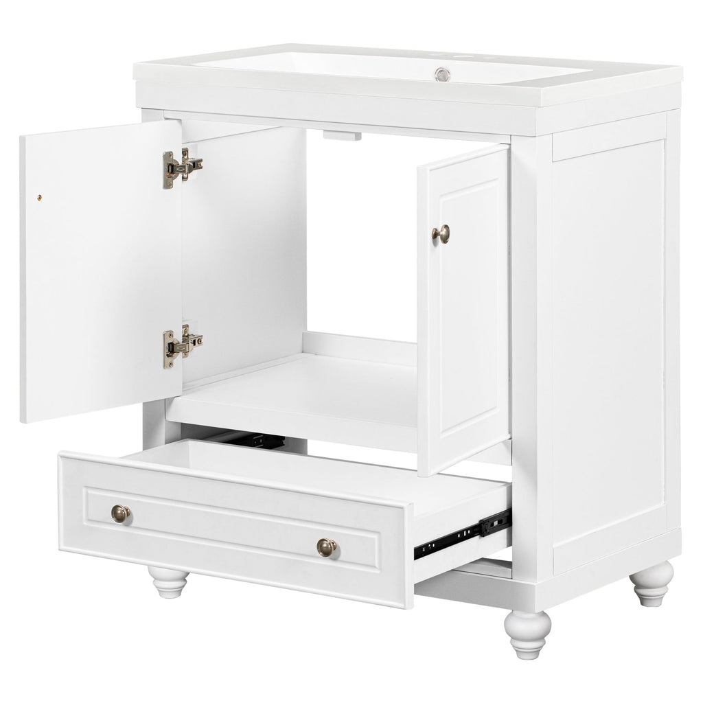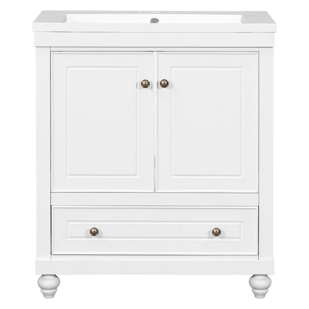 30" Bathroom Vanity with Sink, Combo, Cabinet with Doors and Drawer, Solid Frame and MDF Board, White