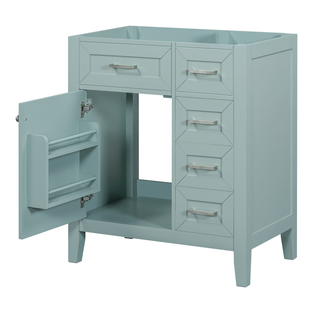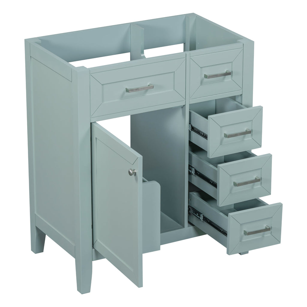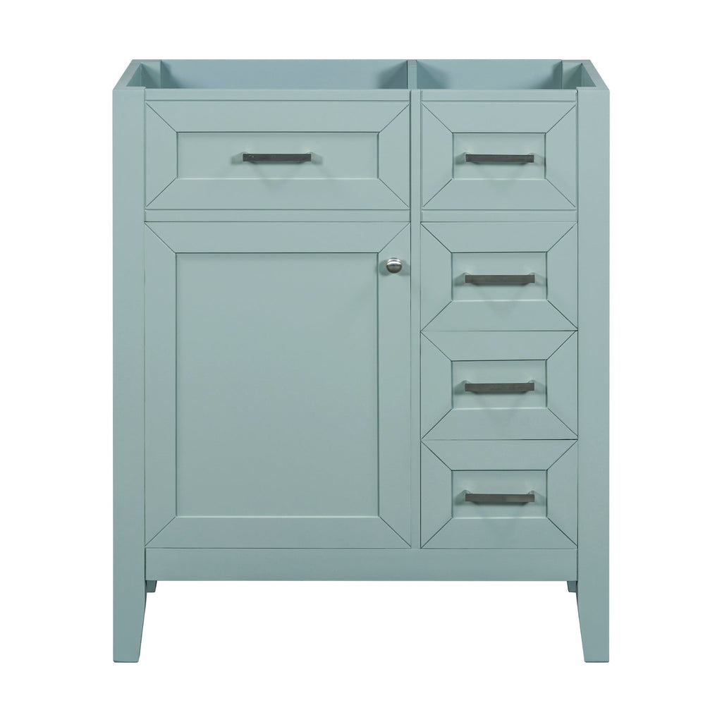 - Stylish 30" Bathroom Vanity Base Only: This 30" bathroom vanity is suitable for bathroom in any decoration style. Freestanding green vanity cabinet with silver handles complies with your bathroom facilities. The groove design on the door and drawer increases the artistry and aesthetics of the home environment. If you're looking for a simple but stylish bathroom sink vanity, our product will be a great choice to upgrade your bathroom.