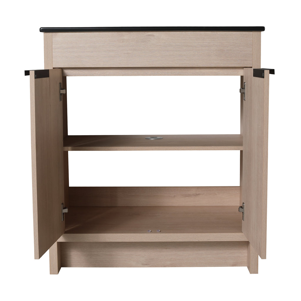 Vanity Base is made of High Quality "Eco-Friendly" Plywood that surface material used "Scratch & Water-Resistant" Melamine, which is designed to not only withstand threats of moisture and humidity but also easy to clean and maintain.