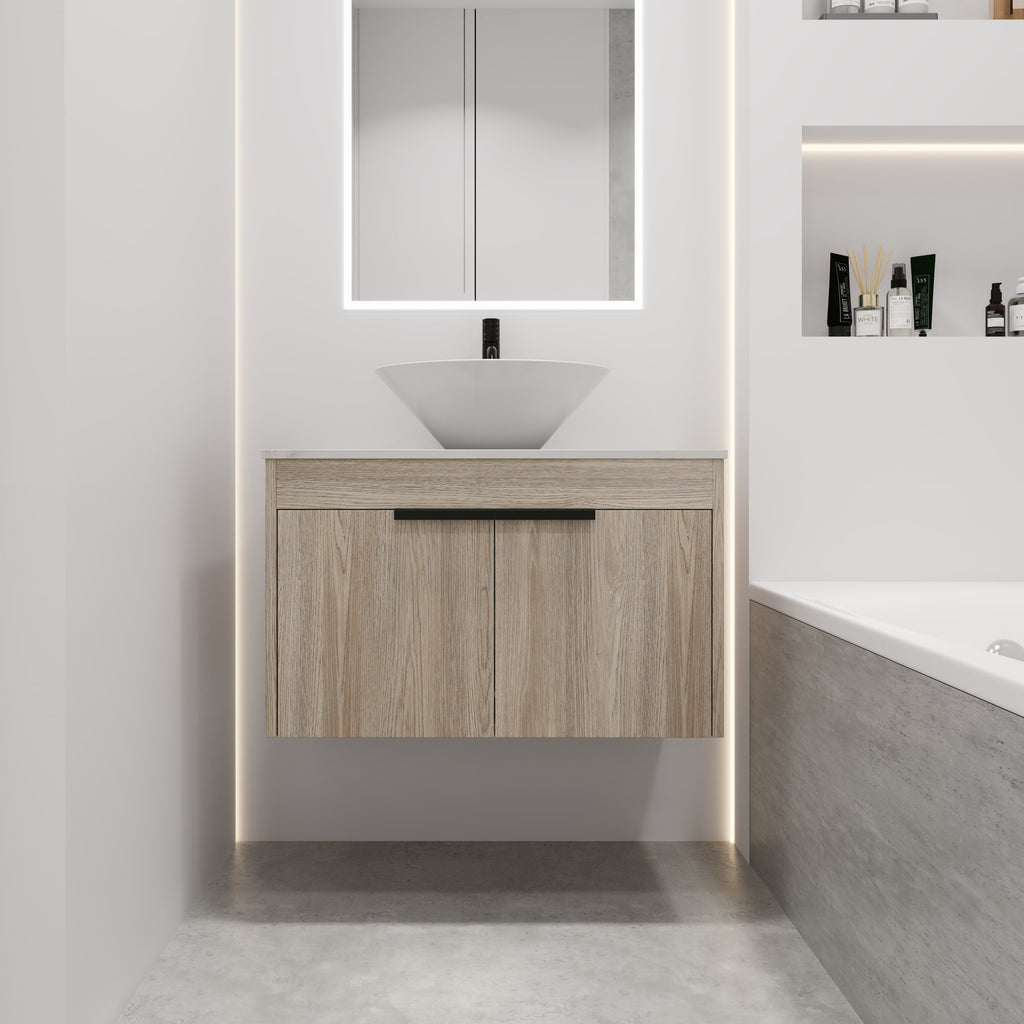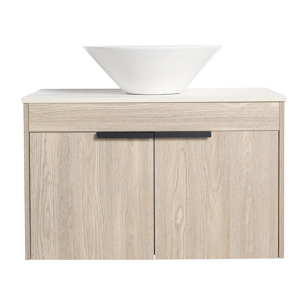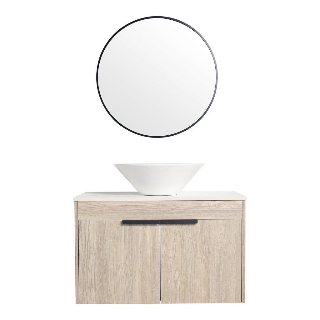 30" Modern Design Float Bathroom Vanity With Ceramic Basin Set, Wall Mounted White Oak Vanity With Soft Close Door, KD-PackingD-Packing Pieces