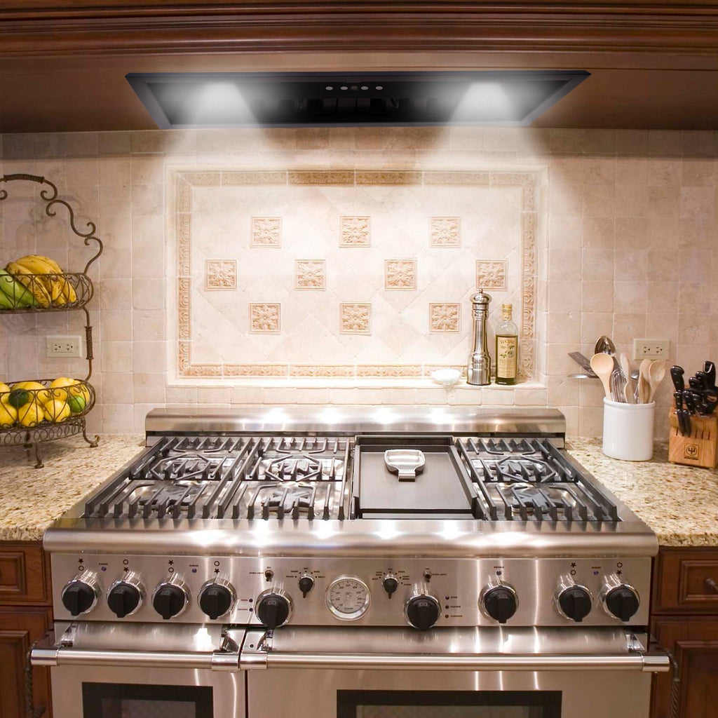 * Powerful Suction: 6" Duct 3-Speed Max 600CFM ample airflow with the excellent copper ball-bearing motor to make it long-life working. Support Top & Rear Exhaust Choices. The charcoal filters effectively filter out the grease and odor from cooking fumes.