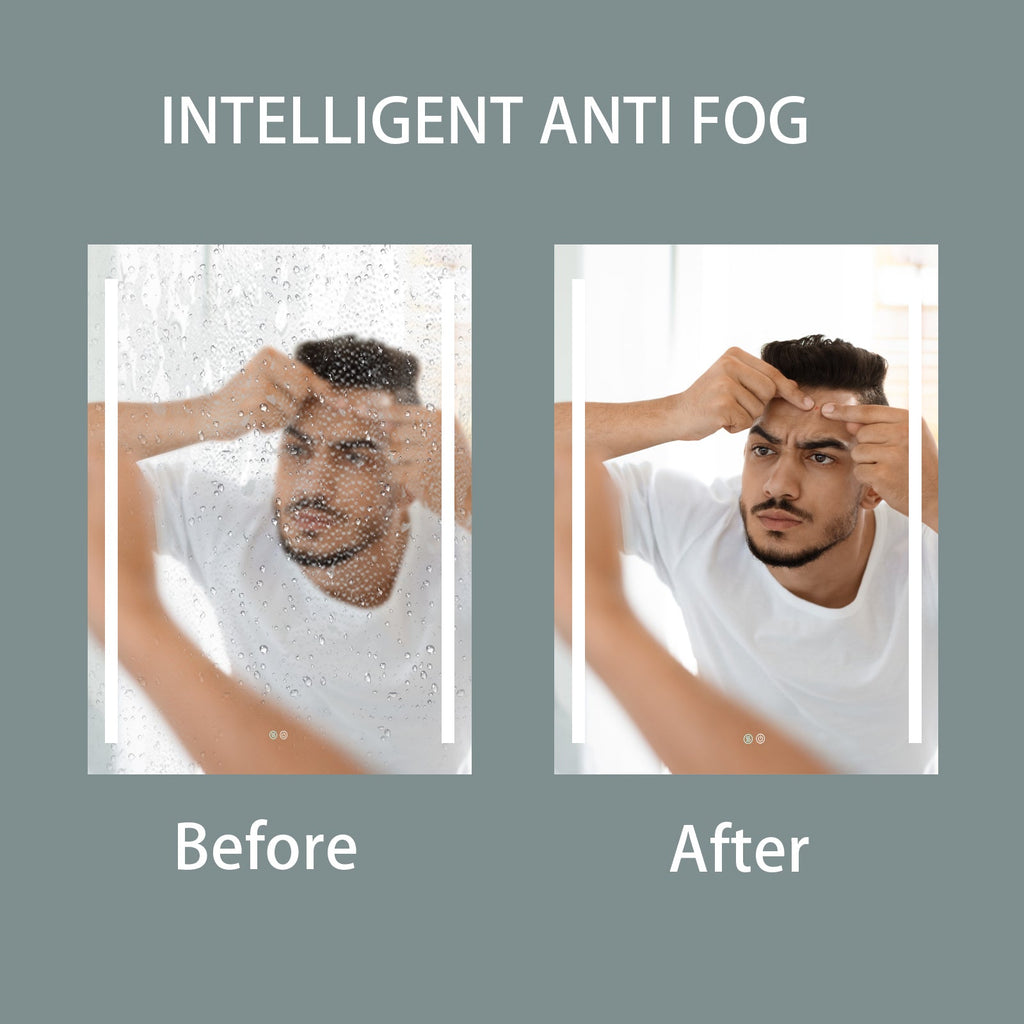 2. Defogging and IP44 waterproof. Our medicine cabinet newly developed technology enables mirror surface close to 40°C in a short period of time to achieve a faster and safer defogging effect. The defogging automatically turns off while the light is off. IP44 rated waterproof aluminum frame medicine cabinet provide better durability and safty in your bathroom.