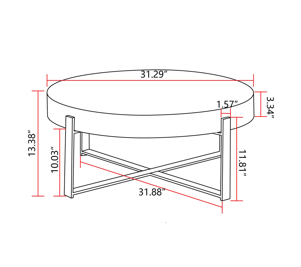- High-quality materials: This round coffee table is made of high-quality fir wood on the top and sides, while the back of the table is made of high-quality MDF.The round coffee table has a solid metal iron frame, which is durable and solid, and cross legs provide stability.