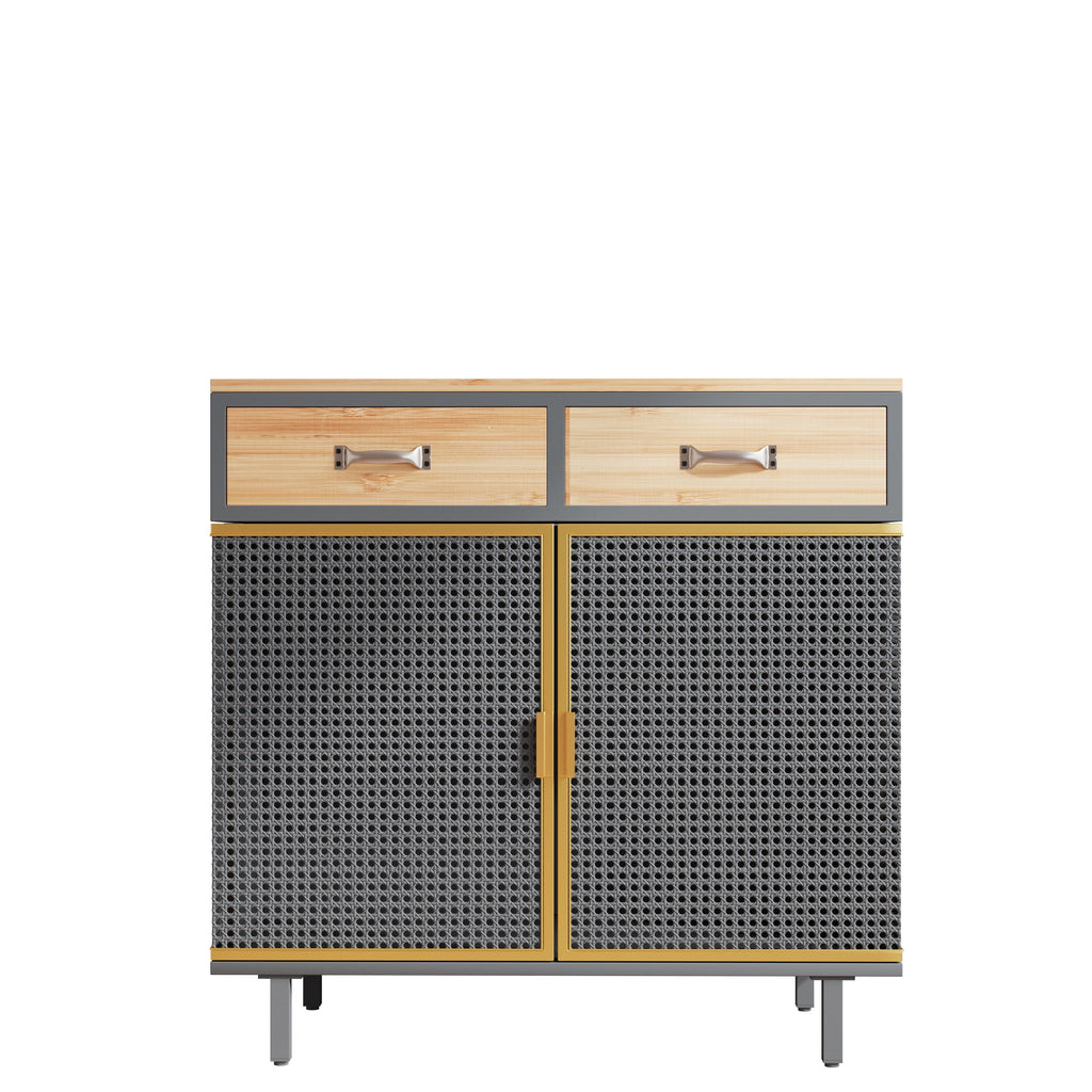 31.5" Wide 2 Drawer Sideboard, Modern Furniture Decor, Made with Iron + Carbonized Bamboo, Easy Assembly