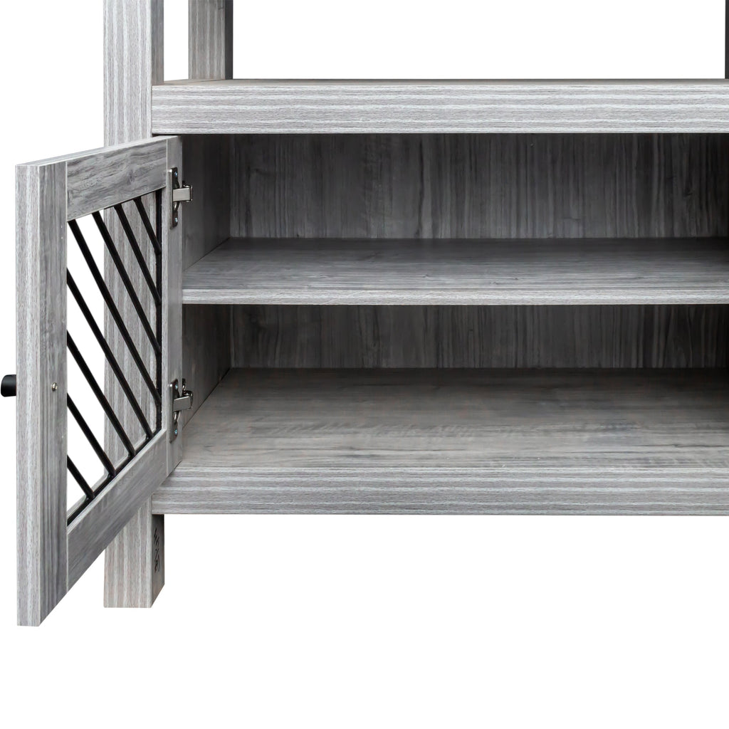 This sideboard cabinet is a unique and modern sideboard cabinet with rattan details of texture on its doors that gives this cabinet a sleek boho-style design for the entryway kitchen dining console living room. This cabinet can work as a cupboard to store plates, trays, and condiments on the open storage shelf and store other kitchen stuff on the inner shelf. It can store books, magazines, and other display items as well. Moreover, it can store towels and bathing items. Organize your kitchen, dining room, living room, and bathroom in a clean and modern way, the perfect addition to your home and office. Especially great for small spaces. It is also a thoughtful gift to your beloved ones. The cabinet is made of an environmentally friendly MDF board, elegant and efficient in the home appearance. A stable metal base makes the coffee table stable and easy to clean the floor under the