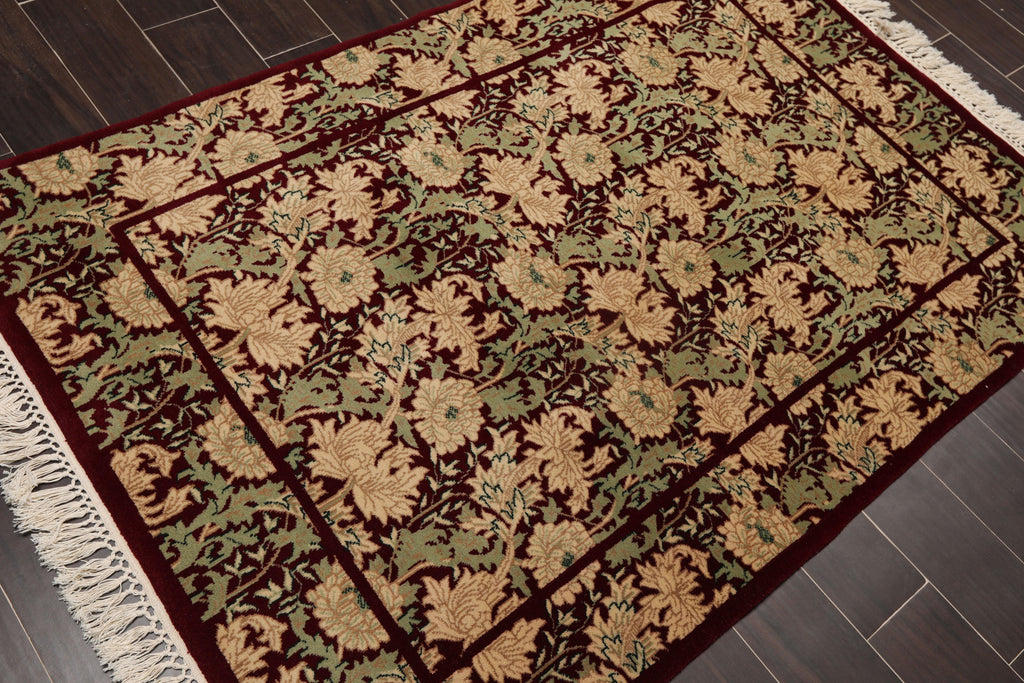3'11"x5'9" Hand Knotted Superfine Botanical Wool Oriental Area Rug Maroon