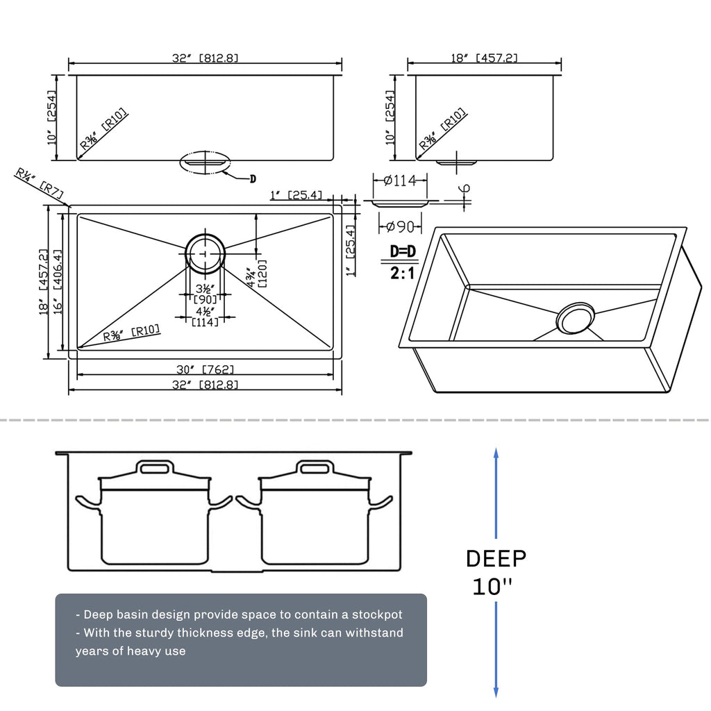 - Package include:1 x 32 inch sink bowl; 1 x 3.5" drainer; 1 x bottom grid.