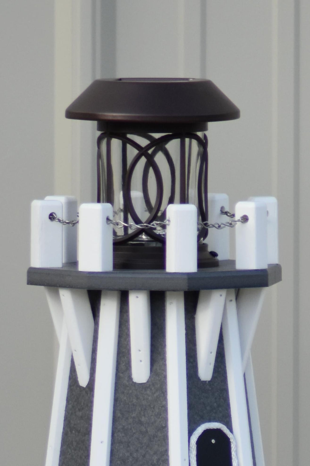 You are Looking at a 32" Solar Powered Poly Lighthouse, Gray with White Trim